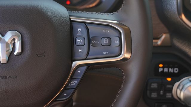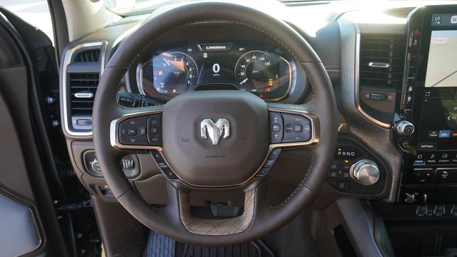 This 1500 Limited comes well equipped with Bed Utility Group (Exterior 115V AC Outlet and MOPAR 4 Adjustable Cargo Tie-Down Hooks), Limited Level An Equipment Group (12-Way/1-Way Trailer Connector, 14.4" Touchscreen Display, 240 Amp Alternator, 4G LTE Wi-Fi Hot Spot, Apple CarPlay, Connected Travel and Traffic Services, Connectivity - US/Canada, Disassociated Touchscreen Display, Drowsy Driver Detection, Evasive Steer Assist, Global Telematics Box Module, Google Android Auto, GPS Antenna Input, GPS Navigation, Hands-Free Active Driving Assist System, HD Radio, Heads-Up Display, Integrated Center Stack Radio, Integrated Voice Command with Bluetooth, Intersection Collision Assist System, LED CHMSL Lamp, Radio: Uconnect 5 Nav with 14.4" Display, RamBox Cargo Management System, SiriusXM Radio Service, SiriusXM with 360L, Smartphone as a Key Capable, Surround View Camera System, Traffic Sign Recognition, Tri-Fold Tonneau Cover, and USB Host Flip), Quick Order Package 27K Longhorn (Grille Surround 4 Chrome Texture 5 Chrome, Longhorn Badge, Longhorn Instrument Cluster Theme 3, Premium Door Trim Panel, Premium Filigree Leather Seats, and Warm Chrome Key Fob), 19 Speakers, 3.92 Rear Axle Ratio, 4-Wheel Disc Brakes, ABS brakes, Active Noise Control System, Adjustable pedals, Air Conditioning, Alloy wheels, AM/FM radio, Apple CarPlay/Android Auto, Audio memory, Auto High-beam Headlights, Auto Power-Folding Mirrors, Auto-dimming door mirrors, Auto-Dimming Exterior Driver Mirror, Auto-dimming Rear-View mirror, Auto-leveling suspension, Automatic temperature control, Bodyside moldings, Brake assist, Bumpers: chrome, Chrome Exterior Mirrors, Compass, Convex Wide-Angle Exterior Mirror Insert, Delay-off headlights, Dome Dual LED Reading Lamp, Driver door bin, Driver vanity mirror, Dual front impact airbags, Dual front side impact airbags, Dual-Pane Panoramic Sunroof, Electronic Stability Control, Exterior Mirrors Courtesy Lamps, Exterior Mirrors with Heating Element, Exterior Mirrors with Memory, Exterior Mirrors with Supplemental Signals, Exterior Parking Camera Rear, Front anti-roll bar, Front Bucket Seats, Front Center Armrest w/Storage, Front dual zone A/C, Front fog lights, Front License Plate Bracket, Front reading lights, Front wheel independent suspension, Fully automatic headlights, Garage door transmitter, Genuine wood console insert, Genuine wood dashboard insert, Genuine wood door panel insert, harman/kardon® Speakers, Heated door mirrors, Heated front seats, Heated rear seats, Heated steering wheel, Illuminated entry, Leather steering wheel, LED Dome/Reading Lamp, Low tire pressure warning, Memory seat, Navigation System, Occupant sensing airbag, Outside temperature display, Overhead airbag, Overhead console, Panic alarm, Passenger door bin, Passenger vanity mirror, Pedal memory, Pirelli Brand Tires, Power door mirrors, Power driver seat, Power passenger seat, Power steering, Power windows, Premium Quilted Leather Bucket Seats, Radio data system, Radio: Uconnect 5 Navigation with 12.0" Display, Rain sensing wipers, Rear anti-roll bar, Rear reading lights, Rear seat center armrest, Rear step bumper, Rear window defroster, Remote keyless entry, Security system, Speed control, Split folding rear seat, Steering wheel mounted audio controls, Tachometer, Telescoping steering wheel, Tilt steering wheel, Traction control, Trailer Brake Control, Trip computer, Turn signal indicator mirrors, Variably intermittent wipers, Ventilated front seats, Ventilated rear seats, Voltmeter, Wheels: 20" x 9" Premium Paint/Polished, and Wheels: 22" x 9" Premium Paint/Polished.