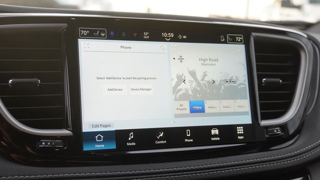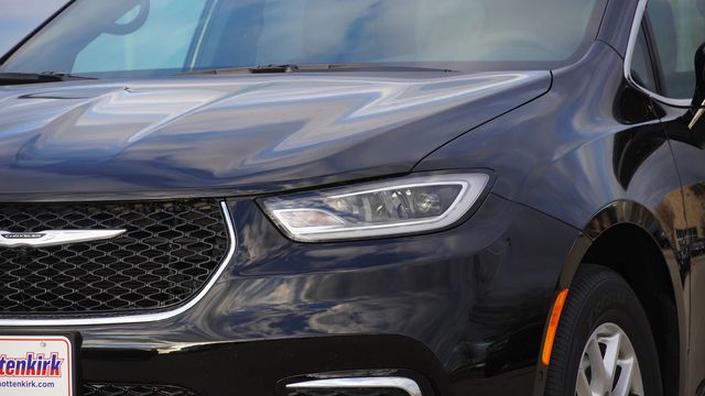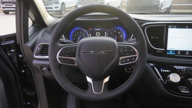 This Pacifica Select comes well equipped with Quick Order Package 27L, Safety Sphere (360 Surround View Camera System and ParkSense Front/Rear Park Assist with Stop), 10.1" Touchscreen Display, 17" x 7.0" Aluminum Wheels, 3.25 Axle Ratio, 3rd row seats: split-bench, 4-Wheel Disc Brakes, 4G LTE Wi-Fi Hot Spot, 6 Speakers, ABS brakes, Air Conditioning, Alloy wheels, AM/FM radio: SiriusXM, Apple CarPlay, Apple CarPlay/Android Auto, Auto-dimming Rear-View mirror, Automatic temperature control, Black Seats, Brake assist, Bumpers: body-color, Caprice Leatherette Bucket Seats, Compass, Connectivity - US/Canada, Delay-off headlights, Disassociated Touchscreen Display, Driver door bin, Driver vanity mirror, Driver's Seat Mounted Armrest, Dual front impact airbags, Dual front side impact airbags, Electronic Stability Control, Emergency communication system: Chrysler Connect, For Details, Visit DriveUconnect.com, Four wheel independent suspension, Front anti-roll bar, Front Bucket Seats, Front dual zone A/C, Front fog lights, Front reading lights, Fully automatic headlights, Garage door transmitter, Google Android Auto, GPS Antenna Input, Heated door mirrors, Heated front seats, Heated steering wheel, Illuminated entry, Integrated Active Noise Cancellation, Integrated Center Stack Radio, Knee airbag, Low tire pressure warning, Memory seat, Occupant sensing airbag, Outside temperature display, Overhead airbag, Overhead console, Panic alarm, ParkView Rear Back-Up Camera, Passenger door bin, Passenger seat mounted armrest, Passenger vanity mirror, Power door mirrors, Power driver seat, Power Liftgate, Power steering, Power windows, Radio data system, Radio: Uconnect 5 with 10.1" Display, Rain sensing wipers, Rear air conditioning, Rear reading lights, Rear window defroster, Rear window wiper, Reclining 3rd row seat, Remote keyless entry, Security system, Speed control, Split folding rear seat, Spoiler, Steering wheel mounted audio controls, Tachometer, Telescoping steering wheel, Tilt steering wheel, Touring Suspension, Traction control, Trip computer, Turn signal indicator mirrors, USB Host Flip, Variably intermittent wipers, and VoltmeteR.
