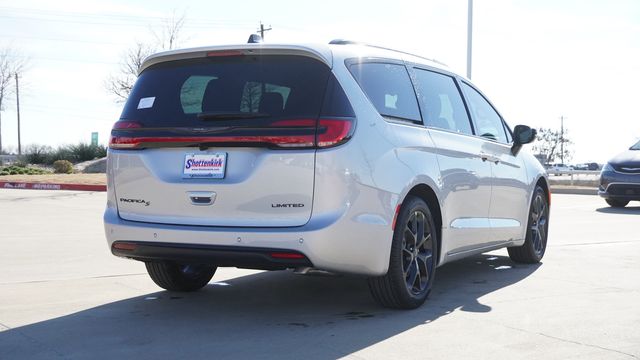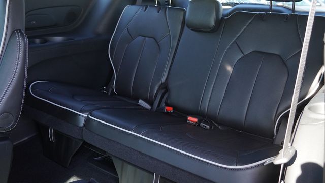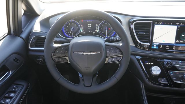 This Pacifica Limited comes well equipped with Quick Order Package 27P, S Appearance Package (Anodized Ink Badging, Black Day Light Opening Moldings, Black Stow 'N Place Roof Rack, Gloss Black Exterior Mirrors, Nappa Leather Bucket Seats with S Logo, Premium Fascia Upper/Lower Grille with Black Surround, Premium Rear Fascia Black, S Badge, and Wheels: 20" x 7.5" S-Model Aluminum Design 1), Safety Sphere (360 Surround View Camera System and ParkSense Front/Rear Park Assist with Stop), 13 Speakers, 18" x 7.5" Painted Aluminum Wheels, 3.25 Axle Ratio, 3rd row seats: split-bench, 4-Wheel Disc Brakes, ABS brakes, Air Conditioning, Alloy wheels, AM/FM radio: SiriusXM 360L, Apple CarPlay/Android Auto, Audio memory, Auto-dimming Rear-View mirror, Automatic temperature control, Black Seats, Brake assist, Bumpers: body-color, Compass, Delay-off headlights, Driver door bin, Driver vanity mirror, Driver's Seat Mounted Armrest, Dual front impact airbags, Dual front side impact airbags, Electronic Stability Control, Emergency communication system: Chrysler Connect, Four wheel independent suspension, Front anti-roll bar, Front Bucket Seats, Front dual zone A/C, Front fog lights, Front reading lights, Fully automatic headlights, Garage door transmitter, Heated door mirrors, Heated front seats, Heated rear seats, Heated steering wheel, Illuminated entry, Integrated Active Noise Cancellation, Knee airbag, Low tire pressure warning, Memory seat, Nappa Leather Bucket Seats, Navigation System, Occupant sensing airbag, Outside temperature display, Overhead airbag, Overhead console, Panic alarm, ParkView Rear Back-Up Camera, Passenger door bin, Passenger seat mounted armrest, Passenger vanity mirror, Power door mirrors, Power driver seat, Power Liftgate, Power moonroof, Power passenger seat, Power steering, Power windows, Radio data system, Radio: Uconnect 5 Nav with 10.1" Display, Rain sensing wipers, Rear air conditioning, Rear reading lights, Rear window defroster, Rear window wiper, Reclining 3rd row seat, Remote keyless entry, Security system, Speed control, Split folding rear seat, Spoiler, Steering wheel mounted audio controls, Tachometer, Telescoping steering wheel, Tilt steering wheel, Touring Suspension, Traction control, Trip computer, Turn signal indicator mirrors, Variably intermittent wipers, Ventilated front seats, and Voltmeter.