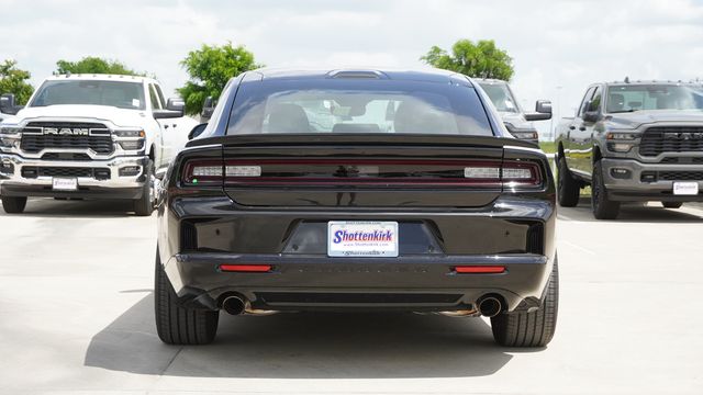 This Charger R/T Scat Pack comes well equipped with Blacktop Package (Dark Exterior Badging, Dual Rear Exhaust with Black Tips, and Wheels: 20" x 10" Dark Finish Aluminum), Quick Order Package 22P Scat Pack, 10 Speakers, 2-Way Manual Adjust Front Head Restraints, 2-Way Power Driver Lumbar Adjust, 4-Wheel Disc Brakes, 4G LTE Wi-Fi Hot Spot, 8-Way Power Driver Seat Adjust, ABS brakes, Active Noise Control System, Air Conditioning, Alloy wheels, AM/FM radio: SiriusXM w/360L, Apple CarPlay/Android Auto, Auto-dimming Rear-View mirror, Automatic temperature control, Black Seats, Brake assist, Bumpers: body-color, Compass, Connectivity - US/Canada, Delay-off headlights, Disassociated Touchscreen Display, Driver door bin, Driver vanity mirror, Dual front impact airbags, Dual front side impact airbags, Electronic Stability Control, Emergency communication system: Dodge Connect, Four wheel independent suspension, Front anti-roll bar, Front Bucket Seats, Front Center Armrest, Front dual zone A/C, Front License Plate Bracket, Front reading lights, Fully automatic headlights, Garage door transmitter, Heated door mirrors, Heated Exterior Mirrors, Heated Front Seats, Heated front seats, Heated steering wheel, Illuminated entry, Integrated Center Stack Radio, Knee airbag, Leather Shift Knob, Leatherette/Cloth Performance Seats, Low Back Bucket Seats, Low tire pressure warning, Occupant sensing airbag, Outside temperature display, Overhead airbag, Overhead console, Panic alarm, ParkView Rear Back-Up Camera, Passenger door bin, Passenger vanity mirror, Power Adjust Mirrors, Power door mirrors, Power driver seat, Power steering, Power windows, Radio data system, Radio: Uconnect 5 with 12.3" Display, Rear anti-roll bar, Rear reading lights, Rear seat center armrest, Rear window defroster, Remote keyless entry, Security system, Speed control, Split folding rear seat, Spoiler, Sport steering wheel, Steering wheel mounted audio controls, Tachometer, Telescoping steering wheel, Tilt steering wheel, Traction control, Trip computer, Variably intermittent wipers, Wheels: 20" x 10" Aluminum, Wireless Apple CarPlay, and Wireless Google Android Auto.