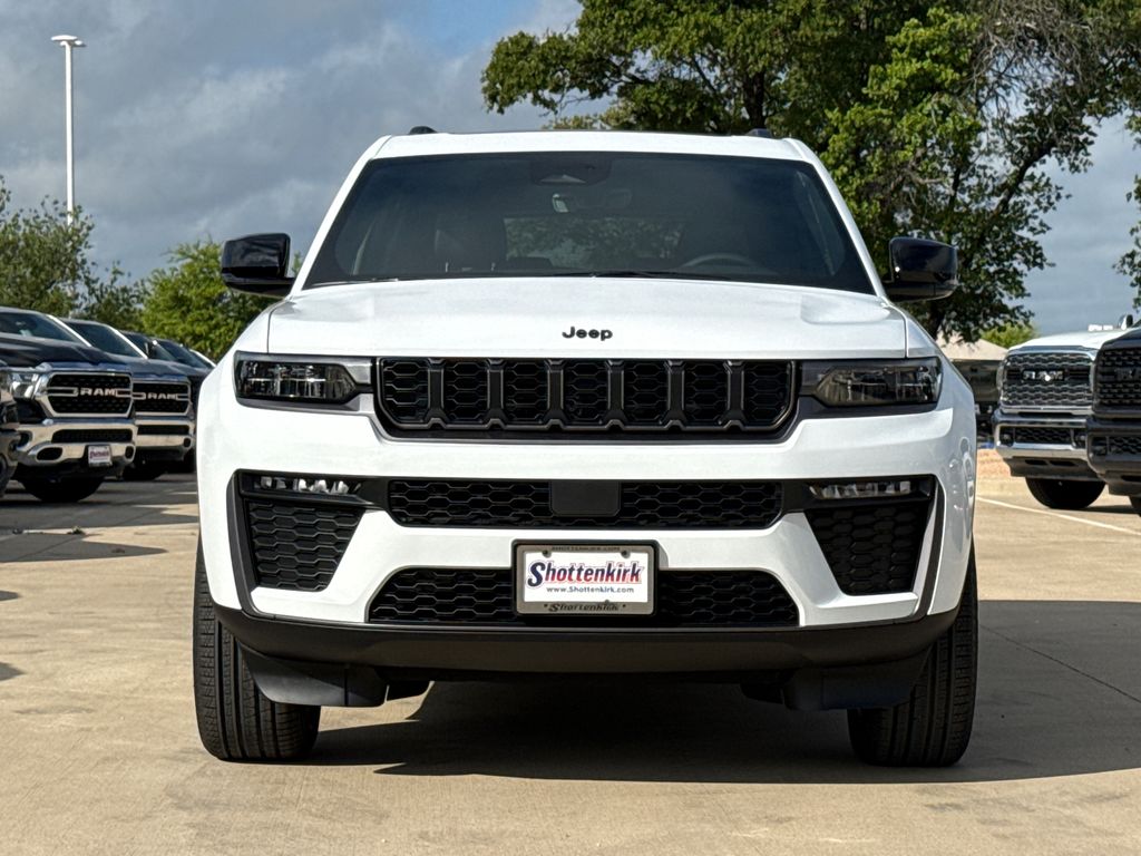 2026 Jeep Grand Cherokee L Limited 4D Sport Utility Bright White Clearcoat 4WD 8-Speed Automatic 2.0L Hurricane 4 Turbo with ESS This vehicle comes well equipped with Limited Altitude Package (Delete Limited Badge, Dual-Pane Panoramic Sunroof, Exterior Accents Dark Neutral Metallic, Interior Rear Facing Camera, and Wheels: 20" x 8.5" Gloss Black Painted Aluminum), Quick Order Package 2BE Limited, 10 Speakers, 3.70 Rear Axle Ratio, 3rd row seats: split-bench, 4-Wheel Disc Brakes, 4G LTE Wi-Fi Hot Spot, ABS brakes, Active Noise Control System, Air Conditioning, Alloy wheels, AM/FM radio: SiriusXM with 360L, Anti-whiplash front head restraints, Apple CarPlay, AppLink/Apple CarPlay and Android Auto, Audio memory, Auto High-beam Headlights, Automatic temperature control, Brake assist, Bumpers: body-color, Capri Leatherette Seats, Compass, Connectivity - US/Canada, Delay-off headlights, Disassociated Touchscreen Display, Driver door bin, Driver vanity mirror, Dual front impact airbags, Dual front side impact airbags, Electronic Stability Control, Emergency communication system, For Details, Visit DriveUconnect.com, Four wheel independent suspension, Front anti-roll bar, Front Bucket Seats, Front Center Armrest w/Storage, Front dual zone A/C, Front fog lights, Front License Plate Bracket, Front reading lights, Fully automatic headlights, Garage door transmitter, Global Telematics Box Module (TBM), Gloss Black Exterior Mirrors, Google Android Auto, GPS Antenna Input, Heated door mirrors, Heated Exterior Mirrors, Heated front seats, Heated rear seats, Heated steering wheel, Illuminated entry, Integrated Center Stack Radio, Integrated Voice Command with Bluetooth, Knee airbag, Low tire pressure warning, Manual Fold Seatbacks, Manual Folding Exterior Mirrors, Memory seat, Navigation System, Normal Duty Suspension, Occupant sensing airbag, Outside temperature display, Overhead airbag, Overhead console, Panic alarm, ParkView Rear Back-Up Camera, Passenger door bin, Passenger vanity mirror, Power door mirrors, Power driver seat, Power Fold Seatbacks, Power Liftgate, Power passenger seat, Power steering, Power windows, Radio data system, Radio: Uconnect 5 Nav with 12.3" Display, Rear air conditioning, Rear anti-roll bar, Rear reading lights, Rear window defroster, Rear window wiper, Reclining 3rd row seat, Remote keyless entry, Security system, Speed control, Speed-Sensitive Wipers, Split folding rear seat, Spoiler, Steering wheel mounted audio controls, Tachometer, Telescoping steering wheel, Tilt steering wheel, Traction control, Trip computer, Turn signal indicator mirrors, USB Host Flip, Variably intermittent wipers, Voltmeter, and Wheels: 18" x 8.0" Polished/Painted AluminuM.