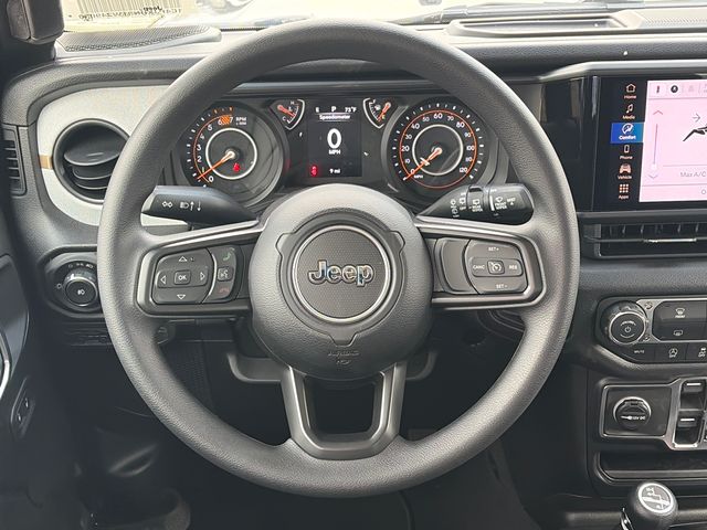 This Wrangler Sport comes well equipped with Quick Order Package 22B Sport, 12.3" Touchscreen Display, 3.45 Overall Top Gear Ratio, 4-Wheel Disc Brakes, 4G LTE Wi-Fi Hot Spot, 8 Speakers, ABS brakes, Air Conditioning, AM/FM radio: SiriusXM with 360L, Apple CarPlay, Apple CarPlay/Android Auto, Aux Battery, Black 3-Piece Hard Top, Brake assist, Compass, Connectivity - US/Canada, Delay-off headlights, Driver door bin, Driver vanity mirror, Dual front impact airbags, Dual front side impact airbags, Electronic Stability Control, For More Info, Call 800-643-2112, Freedom Panel Storage Bag, Front anti-roll bar, Front Bucket Seats, Front Center Armrest w/Storage, Front fog lights, Front reading lights, Google Android Auto, Illuminated entry, Integrated Center Stack Radio, Integrated roll-over protection, Low tire pressure warning, No Soft Top, Non-Lock Fuel Cap Without Discriminator, Normal Duty Suspension, Occupant sensing airbag, Outside temperature display, Overhead airbag, Panic alarm, ParkView Rear Back-Up Camera, Passenger door bin, Passenger vanity mirror, Power steering, Power windows, Radio data system, Radio: Uconnect 5 with 12.3" Display, Rear anti-roll bar, Rear reading lights, Rear Window Defroster, Rear Window Wiper/Washer, Remote keyless entry, SiriusXM Radio Service, SiriusXM with 360L, Speed control, Split folding rear seat, Steering wheel mounted audio controls, Stop-Start Dual Battery System, Tachometer, Telescoping steering wheel, Tilt steering wheel, Traction control, Trip computer, Variably intermittent wipers, Wheels: 17" x 7.5" Black Steel Styled, and Wheels: 17" x 7.5" Gray.