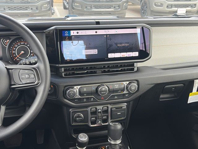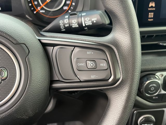 This Wrangler Sport comes well equipped with Quick Order Package 22B Sport, 12.3" Touchscreen Display, 3.45 Overall Top Gear Ratio, 4-Wheel Disc Brakes, 4G LTE Wi-Fi Hot Spot, 8 Speakers, ABS brakes, Air Conditioning, AM/FM radio: SiriusXM with 360L, Apple CarPlay, Apple CarPlay/Android Auto, Aux Battery, Black 3-Piece Hard Top, Brake assist, Compass, Connectivity - US/Canada, Delay-off headlights, Driver door bin, Driver vanity mirror, Dual front impact airbags, Dual front side impact airbags, Electronic Stability Control, For More Info, Call 800-643-2112, Freedom Panel Storage Bag, Front anti-roll bar, Front Bucket Seats, Front Center Armrest w/Storage, Front fog lights, Front reading lights, Google Android Auto, Illuminated entry, Integrated Center Stack Radio, Integrated roll-over protection, Low tire pressure warning, No Soft Top, Non-Lock Fuel Cap Without Discriminator, Normal Duty Suspension, Occupant sensing airbag, Outside temperature display, Overhead airbag, Panic alarm, ParkView Rear Back-Up Camera, Passenger door bin, Passenger vanity mirror, Power steering, Power windows, Radio data system, Radio: Uconnect 5 with 12.3" Display, Rear anti-roll bar, Rear reading lights, Rear Window Defroster, Rear Window Wiper/Washer, Remote keyless entry, SiriusXM Radio Service, SiriusXM with 360L, Speed control, Split folding rear seat, Steering wheel mounted audio controls, Stop-Start Dual Battery System, Tachometer, Telescoping steering wheel, Tilt steering wheel, Traction control, Trip computer, Variably intermittent wipers, and Wheels: 17" x 7.5" Black Steel Styled.
