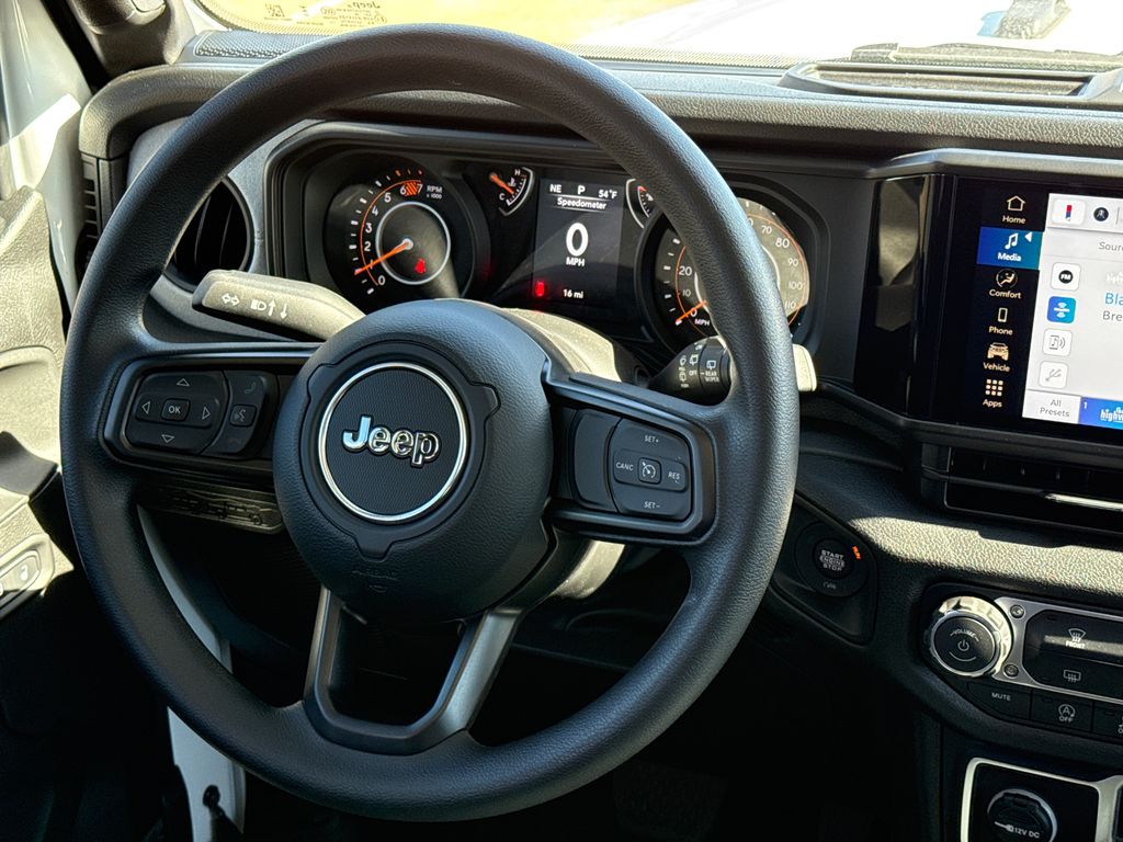2026 Jeep Wrangler Sport 4D Sport Utility Bright White Clearcoat 4WD 8-Speed Automatic 2.0L I4 DOHC This vehicle comes well equipped with Wrangler Sport, 4D Sport Utility, 2.0L I4 DOHC, 8-Speed Automatic, 4WD, Bright White Clearcoat, Black Cloth, ABS brakes, Compass, Electronic Stability Control, Illuminated entry, Low tire pressure warning, ParkView Rear Back-Up Camera, Remote keyless entry, and Traction control Wrangler Sport, 4D Sport Utility, 2.0L I4 DOHC, 8-Speed Automatic, 4WD, Bright White Clearcoat, Black Cloth, ABS brakes, Compass, Electronic Stability Control, Illuminated entry, Low tire pressure warning, ParkView Rear Back-Up Camera, Remote keyless entry, Traction control, 12.3" Touchscreen Display, 3.45 Overall Top Gear Ratio, 4-Wheel Disc Brakes, 4G LTE Wi-Fi Hot Spot, 8 Speakers, Air Conditioning, AM/FM radio: SiriusXM with 360L, Apple CarPlay, Apple CarPlay/Android Auto, Aux Battery, Brake assist, Connectivity - US/Canada, Delay-off headlights, Driver door bin, Driver vanity mirror, Dual front impact airbags, Dual front side impact airbags, For More Info, Call 800-643-2112, Front anti-roll bar, Front Bucket Seats, Front Center Armrest w/Storage, Front fog lights, Front reading lights, Google Android Auto, Integrated Center Stack Radio, Integrated roll-over protection, Non-Lock Fuel Cap Without Discriminator, Normal Duty Suspension, Occupant sensing airbag, Outside temperature display, Overhead airbag, Panic alarm, Passenger door bin, Passenger vanity mirror, Power steering, Power windows, Radio data system, Radio: Uconnect 5 with 12.3" Display, Rear anti-roll bar, Rear reading lights, SiriusXM Radio Service, SiriusXM with 360L, Speed control, Split folding rear seat, Steering wheel mounted audio controls, Stop-Start Dual Battery System, Tachometer, Telescoping steering wheel, Tilt steering wheel, Trip computer, Variably intermittent wipers, and Wheels: 17" x 7.5" Black Steel Styled.