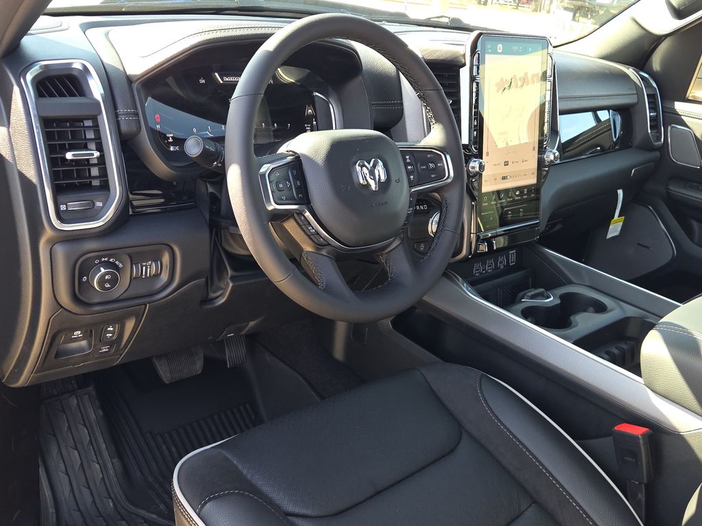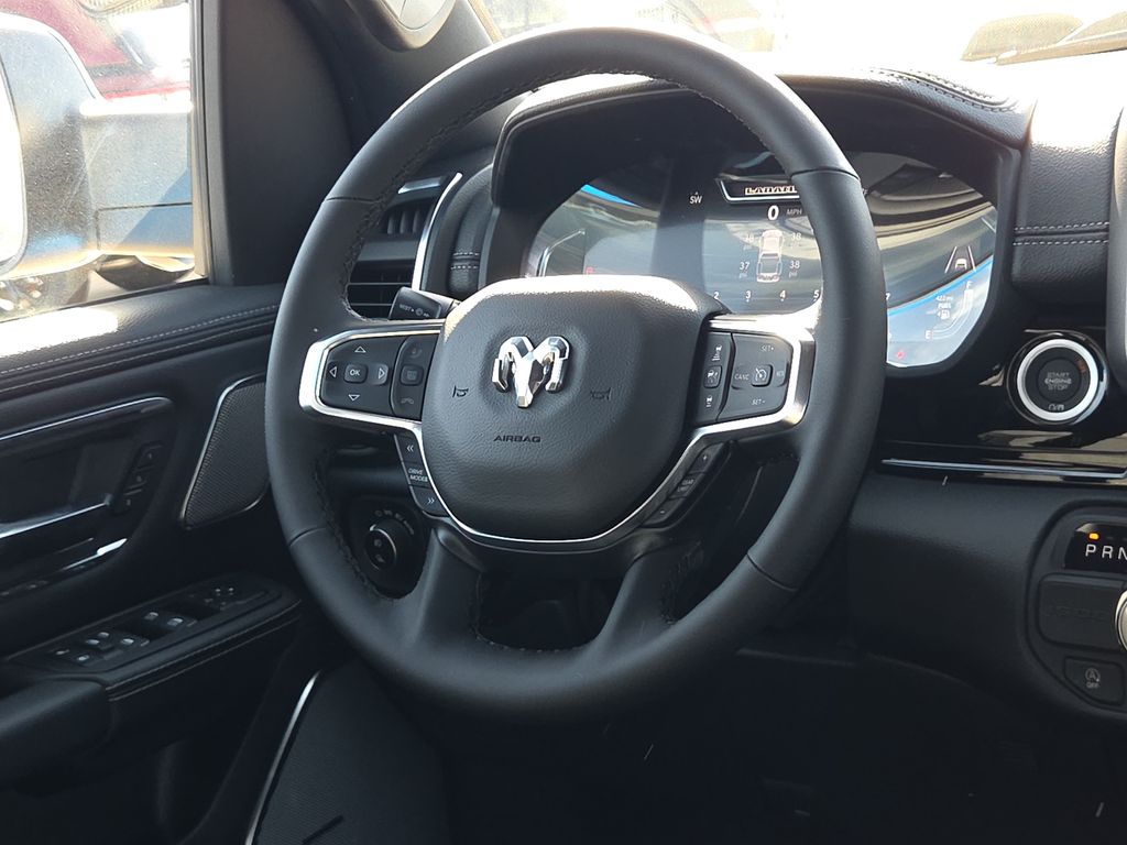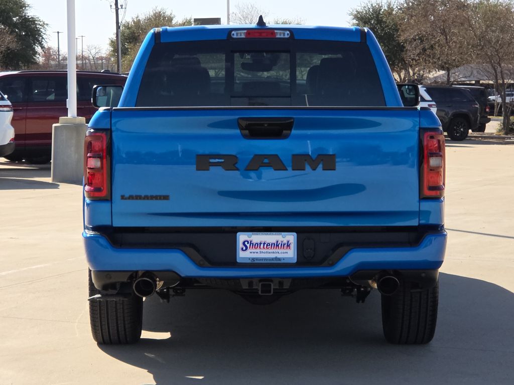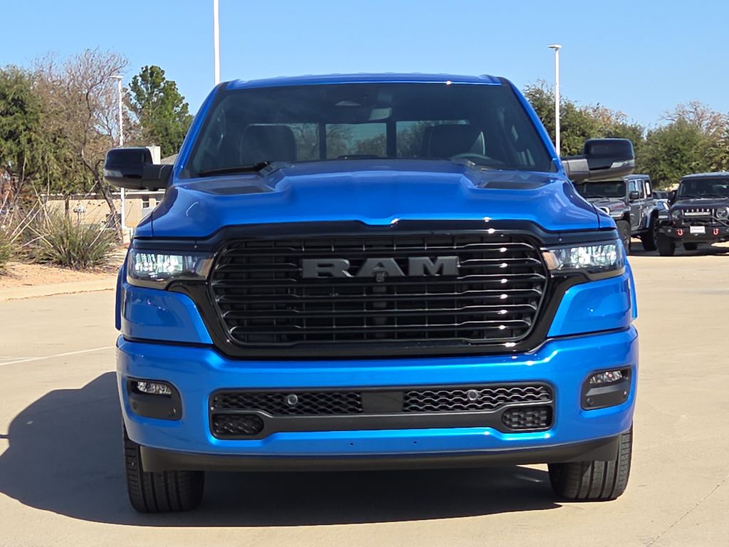 2026 Ram 1500 Laramie 4D Crew Cab Hydro Blue Pearlcoat RWD 8-Speed Automatic 3.0L I6 This vehicle comes well equipped with Bed Utility Group (Exterior 115V AC Outlet, MOPAR 4 Adjustable Cargo Tie-Down Hooks, and MOPAR Spray in Bedliner), Laramie Level 2 Equipment Group (14.4" Touchscreen Display, 4G LTE Wi-Fi Hot Spot, Cluster 12" TFT Color Display, Connected Travel and Traffic Services, Connectivity - US/Canada, Front Passenger Interactive Display, GPS Navigation, Harman/Kardon 19 Speaker Premium Sound, Integrated Center Stack Radio, Integrated Voice Command with Bluetooth, Power Tailgate, Radio: Uconnect 5 Nav with 14.4" Display, Rain Sensitive Windshield Wipers, SiriusXM Radio Service, SiriusXM with 360L, and USB Host Flip), Night Edition (Accent Color Door Handles, Accent Color Premium Power Mirrors, Accent Color Tailgate Handle, Anti-Spin Differential Rear Axle, Auto Power-Folding Mirrors, Auto-Dimming Exterior Driver Mirror, Black Exterior Truck Badging, Black Headlamp Bezels, Black Interior Accents, Black Painted Exterior Mirrors Caps, Black Tail Lamp Bezels, Body Color Front Bumper, Body Color Rear Bumper with Step Pads, Convex Wide-Angle Exterior Mirror Insert, Dual Exhaust with Black Tips, Exterior Mirrors Approach Lamps, Exterior Mirrors Courtesy Lamps, Exterior Mirrors with Heating Element, Exterior Mirrors with Memory, Exterior Mirrors with Supplemental Signals, Grille Surround 3 Black Texture 2 Black, Pirelli Brand Tires, Proximity Approach/Departure Lamps, RAM Grille Badge - Black, Sport Performance Hood, and Wheels: 22" x 9" Forged Aluminum), Quick Order Package 21H Laramie, 1500 Laramie, 4D Crew Cab, 3.0L I6, RWD, Hydro Blue Pearlcoat, and Black Leather Bed Utility Group (Exterior 115V AC Outlet, MOPAR 4 Adjustable Cargo Tie-Down Hooks, and MOPAR Spray in Bedliner), Laramie Level 2 Equipment Group (14.4" Touchscreen Display, 4G LTE Wi-Fi Hot Spot, Cluster 12" TFT Color Display, Connected Travel and Traffic Services, Connectivity - US/Canada, Front Passenger Interactive Display, GPS Navigation, Harman/Kardon 19 Speaker Premium Sound, Integrated Center Stack Radio, Integrated Voice Command with Bluetooth, Power Tailgate, Radio: Uconnect 5 Nav with 14.4" Display, Rain Sensitive Windshield Wipers, SiriusXM Radio Service, SiriusXM with 360L, and USB Host Flip), Night Edition (Accent Color Door Handles, Accent Color Premium Power Mirrors, Accent Color Tailgate Handle, Anti-Spin Differential Rear Axle, Auto Power-Folding Mirrors, Auto-Dimming Exterior Driver Mirror, Black Exterior Truck Badging, Black Headlamp Bezels, Black Interior Accents, Black Painted Exterior Mirrors Caps, Black Tail Lamp Bezels, Body Color Front Bumper, Body Color Rear Bumper with Step Pads, Convex Wide-Angle Exterior Mirror Insert, Dual Exhaust with Black Tips, Exterior Mirrors Approach Lamps, Exterior Mirrors Courtesy Lamps, Exterior Mirrors with Heating Element, Exterior Mirrors with Memory, Exterior Mirrors with Supplemental Signals, Grille Surround 3 Black Texture 2 Black, Pirelli Brand Tires, Proximity Approach/Departure Lamps, RAM Grille Badge - Black, Sport Performance Hood, and Wheels: 22" x 9" Forged Aluminum)