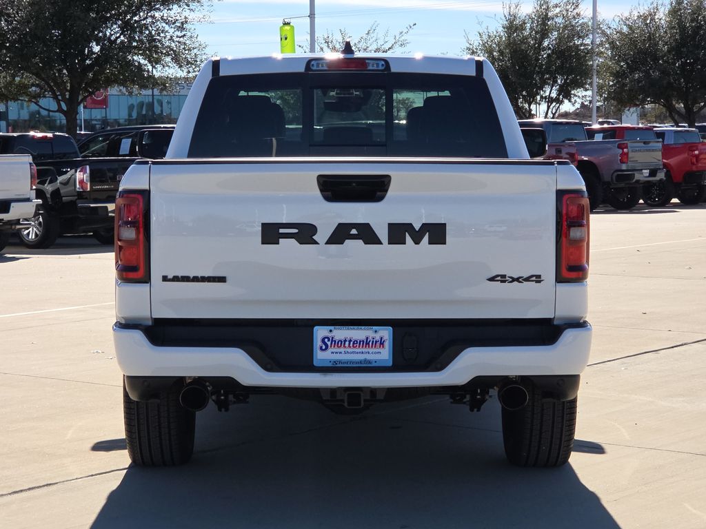 2026 Ram 1500 Laramie 4D Crew Cab Bright White Clearcoat 4WD 8-Speed Automatic HEMI 5.7L V8 Multi Displacement VVT eTorque This vehicle comes well equipped with Laramie Level 2 Equipment Group (14.4" Touchscreen Display, 4G LTE Wi-Fi Hot Spot, Cluster 12" TFT Color Display, Connected Travel and Traffic Services, Connectivity - US/Canada, Front Passenger Interactive Display, GPS Navigation, Harman/Kardon 19 Speaker Premium Sound, Integrated Center Stack Radio, Integrated Voice Command with Bluetooth, Power Tailgate, Radio: Uconnect 5 Nav with 14.4" Display, Rain Sensitive Windshield Wipers, SiriusXM Radio Service, SiriusXM with 360L, and USB Host Flip), Night Edition (Accent Color Door Handles, Accent Color Premium Power Mirrors, Accent Color Tailgate Handle, Anti-Spin Differential Rear Axle, Auto Power-Folding Mirrors, Auto-Dimming Exterior Driver Mirror, Black Exterior Truck Badging, Black Headlamp Bezels, Black Interior Accents, Black Painted Exterior Mirrors Caps, Black Tail Lamp Bezels, Body Color Front Bumper, Body Color Rear Bumper with Step Pads, Convex Wide-Angle Exterior Mirror Insert, Dual Exhaust with Black Tips, Exterior Mirrors Approach Lamps, Exterior Mirrors Courtesy Lamps, Exterior Mirrors with Heating Element, Exterior Mirrors with Memory, Exterior Mirrors with Supplemental Signals, Grille Surround 3 Black Texture 2 Black, Pirelli Brand Tires, Proximity Approach/Departure Lamps, RAM Grille Badge - Black, Sport Performance Hood, and Wheels: 22" x 9" Forged Aluminum), Quick Order Package 27H Laramie, 1500 Laramie, 4D Crew Cab, HEMI 5.7L V8 Multi Displacement VVT eTorque, 4WD, Bright White Clearcoat, and Black Leather Laramie Level 2 Equipment Group (14.4" Touchscreen Display, 4G LTE Wi-Fi Hot Spot, Cluster 12" TFT Color Display, Connected Travel and Traffic Services, Connectivity - US/Canada, Front Passenger Interactive Display, GPS Navigation, Harman/Kardon 19 Speaker Premium Sound, Integrated Center Stack Radio, Integrated Voice Command with Bluetooth, Power Tailgate, Radio: Uconnect 5 Nav with 14.4" Display, Rain Sensitive Windshield Wipers, SiriusXM Radio Service, SiriusXM with 360L, and USB Host Flip), Night Edition (Accent Color Door Handles, Accent Color Premium Power Mirrors, Accent Color Tailgate Handle, Anti-Spin Differential Rear Axle, Auto Power-Folding Mirrors, Auto-Dimming Exterior Driver Mirror, Black Exterior Truck Badging, Black Headlamp Bezels, Black Interior Accents, Black Painted Exterior Mirrors Caps, Black Tail Lamp Bezels, Body Color Front Bumper, Body Color Rear Bumper with Step Pads, Convex Wide-Angle Exterior Mirror Insert, Dual Exhaust with Black Tips, Exterior Mirrors Approach Lamps, Exterior Mirrors Courtesy Lamps, Exterior Mirrors with Heating Element, Exterior Mirrors with Memory, Exterior Mirrors with Supplemental Signals, Grille Surround 3 Black Texture 2 Black, Pirelli Brand Tires, Proximity Approach/Departure Lamps, RAM Grille Badge - Black, Sport Performance Hood, and Wheels: 22" x 9" Forged Aluminum), Quick Order Package 27H Laramie, 1500 Laramie, 4D Crew Cab, HEMI 5.7L V8 Multi Displacement VVT eTorque, 4WD, Bright White Clearcoat, Black Leather, 10 Speakers, 4-Wheel Disc Brakes, ABS brakes, Active Noise Control System, Adjustable pedals, Air Conditioning, Alloy wheels, AM/FM radio: SiriusXM with 360L, Apple CarPlay/Android Auto, Audio memory, Auto High-beam Headlights, Auto-dimming door mirrors, Auto-dimming Rear-View mirror, Automatic temperature control, Brake assist, Bumpers: chrome, Chrome Exterior Mirrors, Compass, Delay-off headlights, Driver door bin, Driver vanity mirror, Dual front impact airbags, Dual front side impact airbags, Electronic Stability Control, Front anti-roll bar, Front Bucket Seats, Front Center Armrest w/Storage, Front dual zone A/C, Front fog lights, Front License Plate Bracket, Front reading lights, Front wheel independe Price includes: $1000 - 2026 National Bonus Cash . Exp. 03/31/2026 $3500 - 2026 National Retail Bonus Cash . Exp. 03/31/2026
