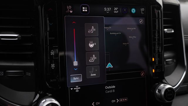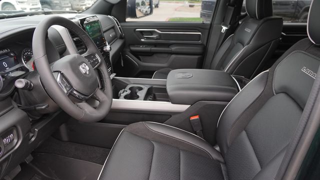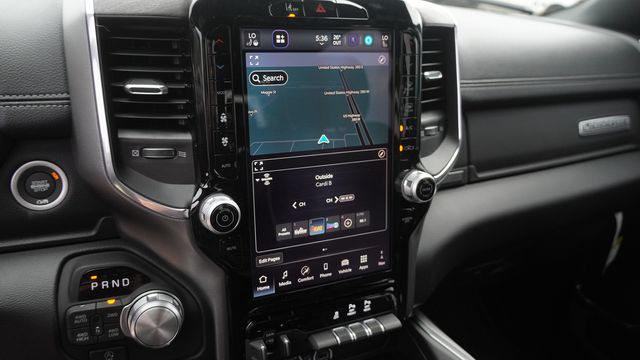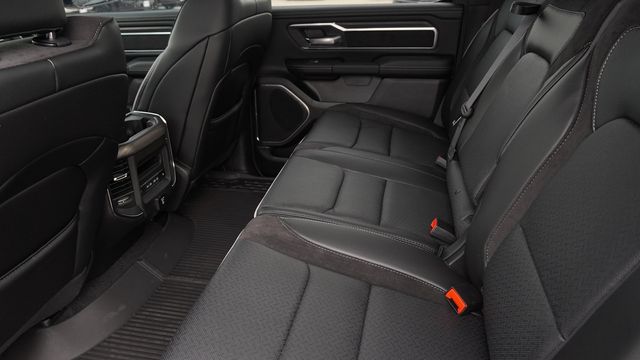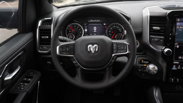 This 1500 Laramie comes well equipped with Laramie Level 1 Equipment Group (Rain Sensitive Windshield Wipers and Remote Tailgate Release), Night Edition (Accent Color Door Handles, Accent Color Premium Power Mirrors, Accent Color Tailgate Handle, Anti-Spin Differential Rear Axle, Auto Power-Folding Mirrors, Auto-Dimming Exterior Driver Mirror, Black Exterior Truck Badging, Black Headlamp Bezels, Black Interior Accents, Black Painted Exterior Mirrors Caps, Black Tail Lamp Bezels, Body Color Front Bumper, Body Color Rear Bumper with Step Pads, Convex Wide-Angle Exterior Mirror Insert, Dual Exhaust with Black Tips, Exterior Mirrors Approach Lamps, Exterior Mirrors Courtesy Lamps, Exterior Mirrors with Heating Element, Exterior Mirrors with Memory, Exterior Mirrors with Supplemental Signals, Grille Surround 3 Black Texture 2 Black, Pirelli Brand Tires, Proximity Approach/Departure Lamps, RAM Grille Badge - Black, Sport Performance Hood, and Wheels: 22" x 9" Forged Aluminum), Quick Order Package 27H Laramie, 10 Speakers, 4-Wheel Disc Brakes, 4G LTE Wi-Fi Hot Spot, ABS brakes, Active Noise Control System, Adjustable pedals, Air Conditioning, Alloy wheels, AM/FM radio: SiriusXM with 360L, Apple CarPlay/Android Auto, Audio memory, Auto High-beam Headlights, Auto-dimming door mirrors, Auto-dimming Rear-View mirror, Automatic temperature control, Brake assist, Bumpers: chrome, Chrome Exterior Mirrors, Compass, Connected Travel and Traffic Services, Connectivity - US/Canada, Delay-off headlights, Driver door bin, Driver vanity mirror, Dual front impact airbags, Dual front side impact airbags, Electronic Stability Control, Front anti-roll bar, Front Bucket Seats, Front Center Armrest w/Storage, Front dual zone A/C, Front fog lights, Front reading lights, Front wheel independent suspension, Fully automatic headlights, Garage door transmitter, GPS Navigation, Heated door mirrors, Heated front seats, Heated rear seats, Heated steering wheel, Illuminated entry, Integrated Center Stack Radio, Integrated Voice Command with Bluetooth, Leather steering wheel, Leather Trimmed Bucket Seats, Low tire pressure warning, Manufacturer's Statement of Origin, Memory seat, MOPAR Front and Rear Rubber Floor Mats, Navigation System, Occupant sensing airbag, Off-Road Information Pages, Outside temperature display, Overhead airbag, Overhead console, Panic alarm, ParkView Rear Back-Up Camera, Passenger door bin, Passenger vanity mirror, Pedal memory, Power door mirrors, Power driver seat, Power passenger seat, Power steering, Power windows, Radio data system, Radio: Uconnect 5 Navigation with 12.0" Display, RAM Grille Badge - Chrome, Rear anti-roll bar, Rear reading lights, Rear seat center armrest, Rear step bumper, Remote keyless entry, Security system, SiriusXM Radio Service, SiriusXM with 360L, Speed control, Split folding rear seat, Steering wheel mounted audio controls, Tachometer, Telescoping steering wheel, Tilt steering wheel, Traction control, Trailer Brake Control, Trip computer, Turn signal indicator mirrors, USB Host Flip, Variably intermittent wipers, Ventilated front seats, Voltmeter, and Wheels: 20" x 9" Premium Paint/Polish.