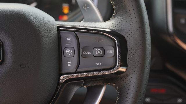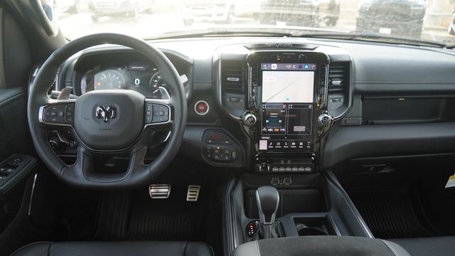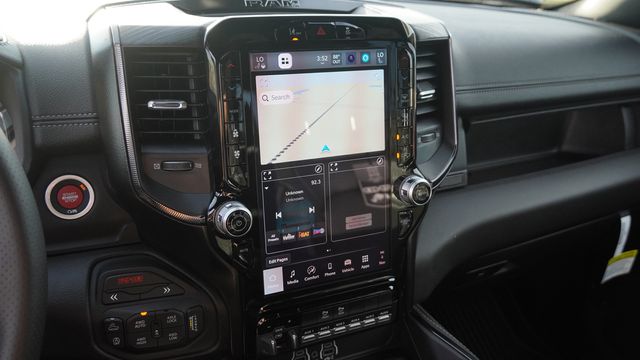 This 1500 RHO comes well equipped with Bed Utility Group (Exterior 115V AC Outlet, MOPAR 4 Adjustable Cargo Tie-Down Hooks, and MOPAR Deployable Bed Step), Quick Order Package 22Y RHO, GPS Navigation, Navigation System, 10 Speakers, 3.92 Rear Axle Ratio, 4-Wheel Disc Brakes, 4G LTE Wi-Fi Hot Spot, ABS brakes, Adaptive suspension, Adjustable pedals, Air Conditioning, Alloy wheels, AM/FM radio, Apple CarPlay/Android Auto, Auto High-beam Headlights, Auto Power-Folding Mirrors, Auto-dimming door mirrors, Auto-Dimming Exterior Driver Mirror, Auto-dimming Rear-View mirror, Automatic temperature control, Brake assist, Compass, Connectivity - US/Canada, Delay-off headlights, Disassociated Touchscreen Display, Driver door bin, Driver vanity mirror, Dual front impact airbags, Dual front side impact airbags, Electronic Stability Control, Exterior Mirrors Courtesy Lamps, Exterior Parking Camera Rear, Flareside Box, Front anti-roll bar, Front Bucket Seats, Front Center Armrest w/Storage, Front dual zone A/C, Front fog lights, Front License Plate Bracket, Front reading lights, Front wheel independent suspension, Fully automatic headlights, Garage door transmitter, HD Radio, Heated door mirrors, Heated front seats, Heated steering wheel, Illuminated entry, Integrated Center Stack Radio, Leather Shift Knob, Leather steering wheel, Leather Trimmed Bucket Seats, Low tire pressure warning, MOPAR RHO Exterior Graphics, MOPAR RHO Hood Graphics, Occupant sensing airbag, Outside temperature display, Overhead airbag, Overhead console, Panic alarm, Passenger door bin, Passenger vanity mirror, Power door mirrors, Power driver seat, Power passenger seat, Power steering, Power windows, Radio data system, Rear reading lights, Rear seat center armrest, Rear step bumper, Rear window defroster, Remote keyless entry, Security system, SiriusXM Radio Service, Speed control, Split folding rear seat, Sport steering wheel, Steering wheel mounted audio controls, Tachometer, Telescoping steering wheel, Tilt steering wheel, Traction control, Trip computer, Turn signal indicator mirrors, USB Host Flip, Variably intermittent wipers, Voltmeter, Wheels: 18" x 9" Bead-Lock Aluminum, and Wheels: 18" x 9" Black Paint/Polish Aluminum.