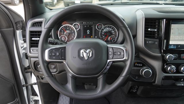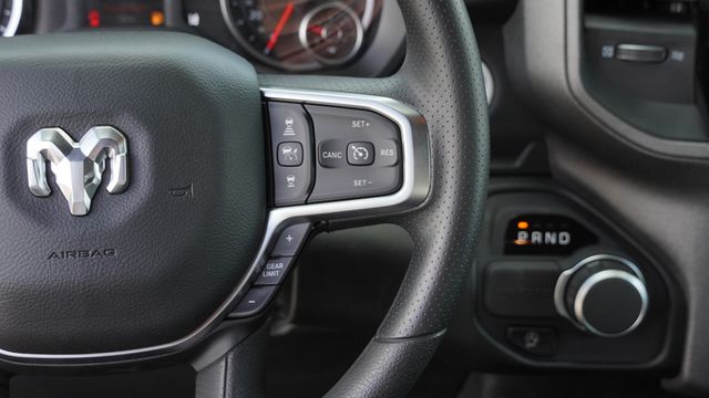 This 1500 Express comes well equipped with Quick Order Package 23D Express (Black Interior Accents, Body Color Front Bumper, Body Color Rear Bumper with Step Pads, Bridgestone Brand Tires, Front Center Seat Cushion Storage, Front LED Fog Lamps, Grille Surround 1 Body Color Texture 1 Black, SiriusXM Radio Service, and Wheels: 20" x 9.0" Aluminum Polished Painted), Tradesman Level 1 Equipment Group (2nd Row in Floor Storage Bins, Cloth Bench Seat, Front and Rear Floor Mats, Rear Power Sliding Window, and SiriusXM Satellite Radio), 4-Wheel Disc Brakes, 48V Belt Starter Generator, 6 Speakers, ABS brakes, Air Conditioning, AM/FM radio, Apple CarPlay/Android Auto, Auto High-beam Headlights, Black Exterior Mirrors, Brake assist, Compass, Delay-off headlights, Driver door bin, Dual front impact airbags, Dual front side impact airbags, Electronic Stability Control, Exterior Mirrors with Heating Element, Front anti-roll bar, Front Center Armrest, Front License Plate Bracket, Front reading lights, Front wheel independent suspension, Fully automatic headlights, Heated door mirrors, Heavy Duty Vinyl 40/20/40 Split Bench Seat, Illuminated entry, Low tire pressure warning, Manual Folding Exterior Mirrors, Occupant sensing airbag, Outside temperature display, Overhead airbag, Overhead console, Panic alarm, ParkView Rear Back-Up Camera, Passenger door bin, Passenger vanity mirror, Power door mirrors, Power steering, Power windows, Radio data system, Radio: Uconnect 5 W with 8.4" Display, Rear anti-roll bar, Rear step bumper, Rear Wheelhouse Liners, Remote keyless entry, Speed control, Supplier Part Tracking (J-1), Tachometer, Telescoping steering wheel, Tilt steering wheel, Traction control, Variably intermittent wipers, Voltmeter, and Wheels: 18" x 7.5" Steel Painted.