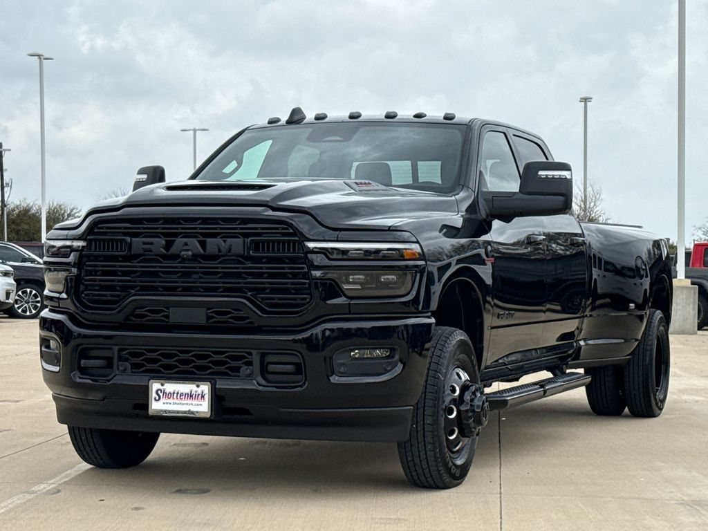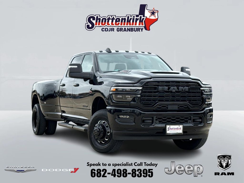 2026 Ram 3500 Laramie 4D Crew Cab Diamond Black Crystal Pearlcoat 4WD 8-Speed Automatic 6.7L I6 This vehicle comes well equipped with Laramie Level 1 Plus Equipment Group (#1 Seat Foam Cushion, 115V Auxiliary Rear Power Outlet, 2 Way Rear Headrest Seat, 2nd Row in Floor Storage Bins, 4 Way Front Headrests, Active Lane Management System, Adaptive Steering System, Auto Adjust in Reverse Exterior Mirrors, Auto Dimming Exterior Passenger Mirror, Auto High Beam Headlamp Control, Auto Power-Folding Mirrors, Auto-Dimming Exterior Mirrors, Bucket Seats, Center Stop Lamp with Cargo View Camera, Chrome Exterior Mirrors, Drowsy Driver Detection, Dual Wireless Charging Pad, Exterior Mirrors Courtesy Lamps, Exterior Mirrors with Heating Element, Exterior Mirrors with Memory, Exterior Mirrors with Supplemental Signals, Foam Bottle Insert (door Trim Panel), Folding Flat Load Floor Storage, Forward and Reverse Utility Lights, Front Seat Back Map Pockets, Full Length Upgraded Floor Console, Heated Front Seats, Heated Steering Wheel, High Back Seats, Leather Trimmed Bucket Seats, LED Bed Lighting, Mirror Running Lights, MOPAR Deployable Bed Step, MOPAR Spray in Bedliner, Power 2-Way Driver Lumbar Adjust, Power 2-Way Passenger Lumbar Adjust, Power Adjust 8-Way Driver Seat, Power Adjust 8-Way Front Passenger Seat, Power Adjust Mirrors, Power Adjustable Pedals with Memory, Power Heat Fold Memory Telescopic Mirrors, Power Telescoping Mirrors, Power-Adjustable Convex Aux Mirrors, Radio/Driver Seat/Mirrors/Pedals Memory, Rain Sensitive Windshield Wipers, Rear 60/40 Folding Seat, Remote Tailgate Release, Traffic Sign Recognition, and Ventilated Front Seats), Max Tow Package (5th Wheel/Gooseneck Towing Prep Group and Auto Level Rear Air Suspension), Night Edition (Black Exterior Mirrors, Black Exterior Truck Badging, Black Wheel Center Hub, Body Color Grille Surround, Gloss Black Grille Billets/Accents, and Sport Performance Hood), Quick Order Package 24H Laramie, Towing Technology Group (Surround View Camera System, Trailer Reverse Guidance, and Trailer Tire Pressure Monitoring System), 3500 Laramie, 4D Crew Cab, 6.7L I6, 4WD, Diamond Black Crystal Pearlcoat, and Black Leather Laramie Level 1 Plus Equipment Group (#1 Seat Foam Cushion, 115V Auxiliary Rear Power Outlet, 2 Way Rear Headrest Seat, 2nd Row in Floor Storage Bins, 4 Way Front Headrests, Active Lane Management System, Adaptive Steering System, Auto Adjust in Reverse Exterior Mirrors, Auto Dimming Exterior Passenger Mirror, Auto High Beam Headlamp Control, Auto Power-Folding Mirrors, Auto-Dimming Exterior Mirrors, Bucket Seats, Center Stop Lamp with Cargo View Camera, Chrome Exterior Mirrors, Drowsy Driver Detection, Dual Wireless Charging Pad, Exterior Mirrors Courtesy Lamps, Exterior Mirrors with Heating Element, Exterior Mirrors with Memory, Exterior Mirrors with Supplemental Signals, Foam Bottle Insert (door Trim Panel), Folding Flat Load Floor Storage, Forward and Reverse Utility Lights, Front Seat Back Map Pockets, Full Length Upgraded Floor Console, Heated Front Seats, Heated Steering Wheel, High Back Seats, Leather Trimmed Bucket Seats, LED Bed Lighting, Mirror Running Lights, MOPAR Deployable Bed Step, MOPAR Spray in Bedliner, Power 2-Way Driver Lumbar Adjust, Power 2-Way Passenger Lumbar Adjust, Power Adjust 8-Way Driver Seat, Power Adjust 8-Way Front Passenger Seat, Power Adjust Mirrors, Power Adjustable Pedals with Memory, Power Heat Fold Memory Telescopic Mirrors, Power Telescoping Mirrors, Power-Adjustable Convex Aux Mirrors, Radio/Driver Seat/Mirrors/Pedals Memory, Rain Sensitive Windshield Wipers, Rear 60/40 Folding Seat, Remote Tailgate Release, Traffic Sign Recognition, and Ventilated Front Seats), Max Tow Package (5th Wheel/Gooseneck Towing Prep Group and Auto Level Rear Air Suspension), Night Edition (Black Exterior Mirrors, B Price includes: $1000 - 2026 National Bonus Cash . Exp. 03/31/2026 $2000 - 2026 Southwest BC State of Texas Regional Bonus Cash . Exp. 03/31/2026