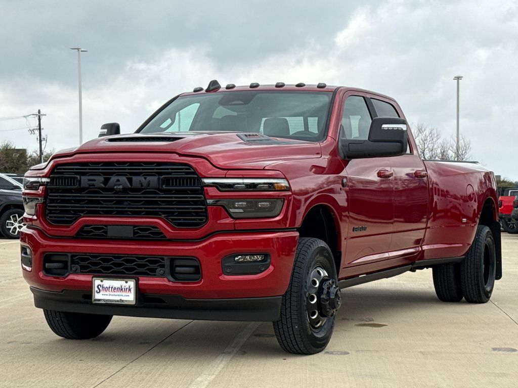2026 Ram 3500 Laramie 4D Crew Cab Molten Red Pearlcoat 4WD 8-Speed Automatic 6.7L I6 This vehicle comes well equipped with Laramie Level 2 Plus Equipment Group (#1 Seat Foam Cushion, 115V Auxiliary Rear Power Outlet, 14.4" Touchscreen Display, 17 Speaker Harman/Kardon Premium Sound, 2 Way Rear Headrest Seat, 2nd Row in Floor Storage Bins, 4 Way Front Headrests, 4G LTE Wi-Fi Hot Spot, Active Lane Management System, Adaptive Steering System, Alexa Built-in, Apple CarPlay, Auto Adjust in Reverse Exterior Mirrors, Auto Dimming Exterior Passenger Mirror, Auto High Beam Headlamp Control, Auto Power-Folding Mirrors, Auto-Dimming Exterior Mirrors, Bucket Seats, Center Stop Lamp with Cargo View Camera, Chrome Exterior Mirrors, Connected Travel and Traffic Services, Connectivity - US/Canada, Disassociated Touchscreen Display, Drowsy Driver Detection, Dual Wireless Charging Pad, Emergency Vehicle Alert System (EVAS), Exterior Mirrors Courtesy Lamps, Exterior Mirrors with Heating Element, Exterior Mirrors with Memory, Exterior Mirrors with Supplemental Signals, Foam Bottle Insert (door Trim Panel), Folding Flat Load Floor Storage, For Details Visit DriveUconnect.com, For More Info, Call 800-643-2112, Forward and Reverse Utility Lights, Front Seat Back Map Pockets, Full Length Upgraded Floor Console, Global Telematics Box Module, Google Android Auto, GPS Antenna Input, GPS Navigation, HD Radio, Heated Front Seats, Heated Steering Wheel, High Back Seats, Integrated Voice Command with Bluetooth, Leather Trimmed Bucket Seats, LED Bed Lighting, Mirror Running Lights, MOPAR Deployable Bed Step, MOPAR Spray in Bedliner, Off-Road Information Pages, Power 2-Way Driver Lumbar Adjust, Power 2-Way Passenger Lumbar Adjust, Power Adjust 8-Way Driver Seat, Power Adjust 8-Way Front Passenger Seat, Power Adjust Mirrors, Power Adjustable Pedals with Memory, Power Deployable Running Boards, Power Heat Fold Memory Telescopic Mirrors, Power Telescoping Mirrors, Power-Adjustable Convex Aux Mirrors, Radio: Uconnect 5 Nav with 14.4" Display, Radio/Driver Seat/Mirrors/Pedals Memory, Rain Sensitive Windshield Wipers, Rear 60/40 Folding Seat, Remote Tailgate Release, Selectable Tire Fill Alert, SiriusXM Radio Service, SiriusXM with 360L, Traffic Sign Recognition, Trailer Tow Pages, and Ventilated Front Seats), Night Edition (Black Exterior Mirrors, Black Exterior Truck Badging, Black Wheel Center Hub, Body Color Grille Surround, Gloss Black Grille Billets/Accents, and Sport Performance Hood), Quick Order Package 24H Laramie, 3500 Laramie, 4D Crew Cab, 6.7L I6, 4WD, Molten Red Pearlcoat, and Black Leather Laramie Level 2 Plus Equipment Group (#1 Seat Foam Cushion, 115V Auxiliary Rear Power Outlet, 14.4" Touchscreen Display, 17 Speaker Harman/Kardon Premium Sound, 2 Way Rear Headrest Seat, 2nd Row in Floor Storage Bins, 4 Way Front Headrests, 4G LTE Wi-Fi Hot Spot, Active Lane Management System, Adaptive Steering System, Alexa Built-in, Apple CarPlay, Auto Adjust in Reverse Exterior Mirrors, Auto Dimming Exterior Passenger Mirror, Auto High Beam Headlamp Control, Auto Power-Folding Mirrors, Auto-Dimming Exterior Mirrors, Bucket Seats, Center Stop Lamp with Cargo View Camera, Chrome Exterior Mirrors, Connected Travel and Traffic Services, Connectivity - US/Canada, Disassociated Touchscreen Display, Drowsy Driver Detection, Dual Wireless Charging Pad, Emergency Vehicle Alert System (EVAS), Exterior Mirrors Courtesy Lamps, Exterior Mirrors with Heating Element, Exterior Mirrors with Memory, Exterior Mirrors with Supplemental Signals, Foam Bottle Insert (door Trim Panel), Folding Flat Load Floor Storage, For Details Visit DriveUconnect.com, For More Info, Call 800-643-2112, Forward and Reverse Utility Lights, Front Seat Back Map Pockets, Full Length Upgraded Floor Console, Global Telematics Box Module, Google Android Auto, G Price includes: $1000 - 2026 National Bonus Cash . Exp. 03/31/2026 $2000 - 2026 Southwest BC State of Texas Regional Bonus Cash . Exp. 03/31/2026