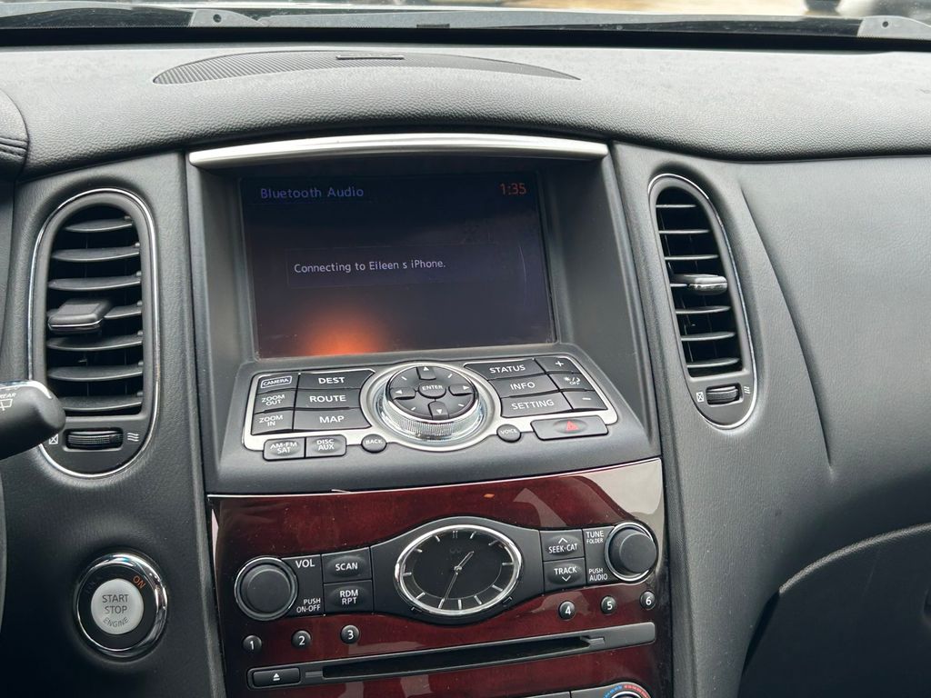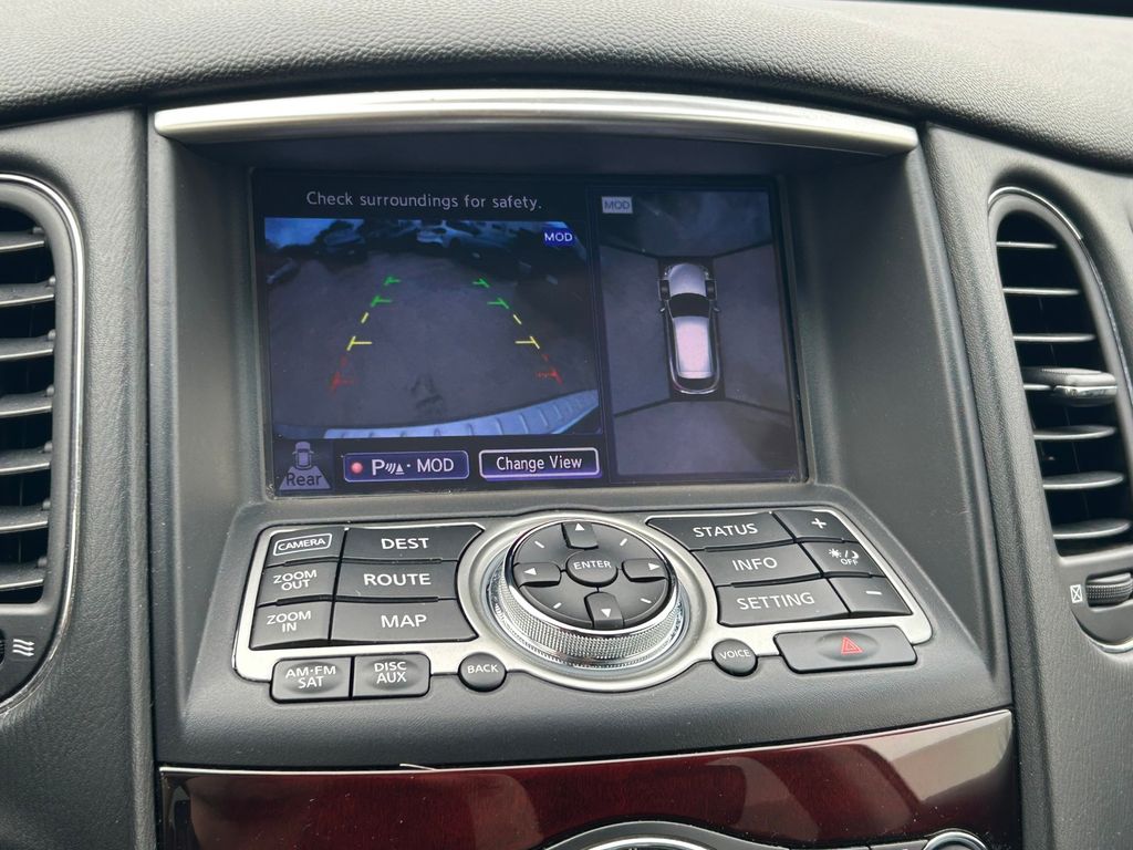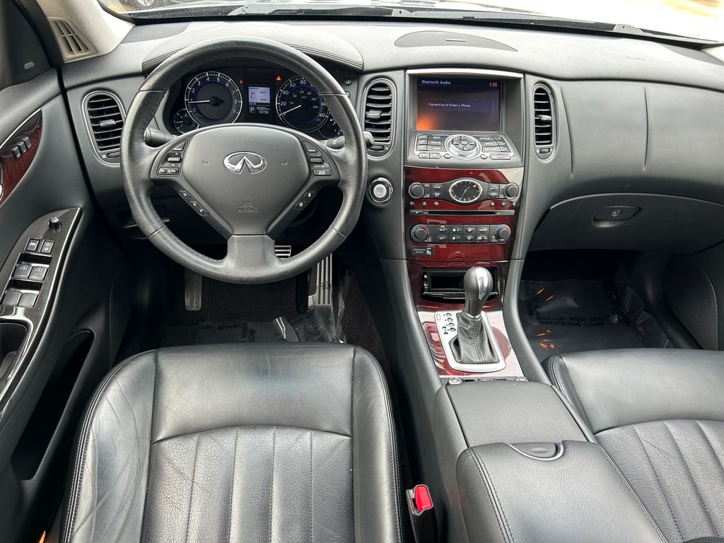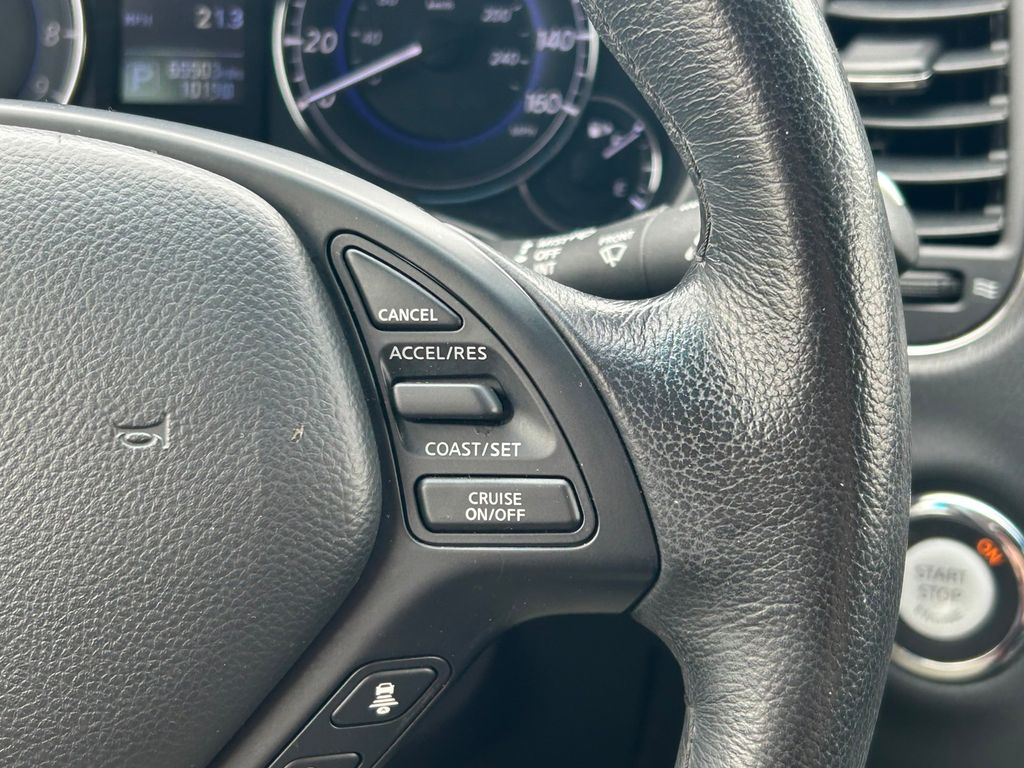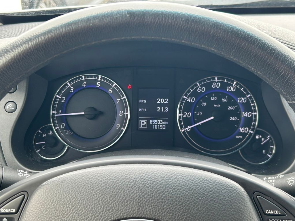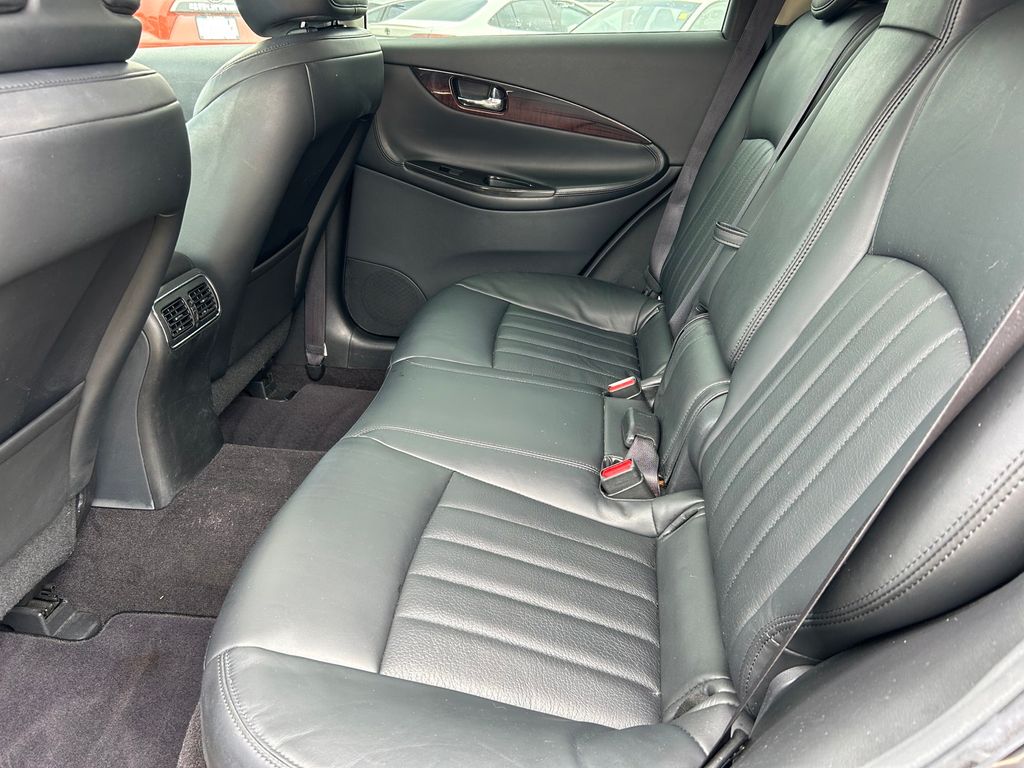 19" x 8.5" Split 5-Spoke Aluminum-Alloy Wheels, 2-Way Power Driver's Seat Lumbar Support, 3.133 Axle Ratio, 4-Wheel Disc Brakes, 6 Speakers, 8-Way Power Front-Passenger's Seat, ABS brakes, Activation Disclaimer, Advanced Climate Control System, Air Conditioning, Alloy wheels, Aluminum Pedals, Aluminum Roof Rails, AM/FM radio: SiriusXM, Anti-whiplash front head restraints, Around View Monitor (AVM), Auto-Dimming Inside Mirror, Automatic temperature control, Blind Spot Warning, Bose 11-Speaker Premium Audio System, Brake assist, Bumpers: body-color, CD player, Coat Hanger On Driver's Seat Head Restraint, Delay-off headlights, Deluxe Touring Package, Driver door bin, Driver vanity mirror, Dual front impact airbags, Dual front side impact airbags, Dual Occupant Memory System For Driver's Seat, Electronic Stability Control, Forward Collision Warning (FCW), Four wheel independent suspension, Front anti-roll bar, Front Bucket Seats, Front Center Armrest, Front dual zone A/C, Front fog lights, Front reading lights, Heated door mirrors, Heated Front Bucket Seats, Heated front seats, High-Intensity Discharge Xenon Headlights, HomeLink Universal Transceiver, Illuminated entry, Illuminated Kick Plates, INFINITI Navigation System, Intelligent Brake Assist (IBA), Intelligent Cruise Control, Lane Departure Warning System, Leather Shift Knob, Leather steering wheel, Leather-Appointed Seat Trim, Literature Kit, Low tire pressure warning, Maple Interior Accents, Occupant sensing airbag, Outside Mirrors w/Reverse Tilt-Down Feature, Outside temperature display, Overhead airbag, Overhead console, Panic alarm, Passenger door bin, Passenger vanity mirror, Power door mirrors, Power driver seat, Power moonroof, Power passenger seat, Power steering, Power Tilt & Telescopic Steering Column, Power Up-Folding 2nd Row Seats, Power windows, Premium Package, Premium Plus Package, Premium Stitching On Meter Hood, Radio data system, Radio: AM/FM/CD w/6 Speaker Audio System, Radio: AM/FM/CD/DVD w/MP3 Playback Capability, Rear anti-roll bar, Rear reading lights, Rear seat center armrest, Rear window defroster, Rear window wiper, Remote keyless entry, Security system, Speed control, Speed-sensing steering, Speed-Sensitive Wipers, Splash Guards (Set of 4), Split folding rear seat, Spoiler, Steering wheel mounted audio controls, Streaming Audio via Bluetooth Wireless Technology, Tachometer, Technology Package, Telescoping steering wheel, Tilt steering wheel, Traction control, Trip computer, Turn signal indicator mirrors, Variably intermittent wipers, Wheels: 18" x 8.0" 8-Spoke Aluminum-Alloy.