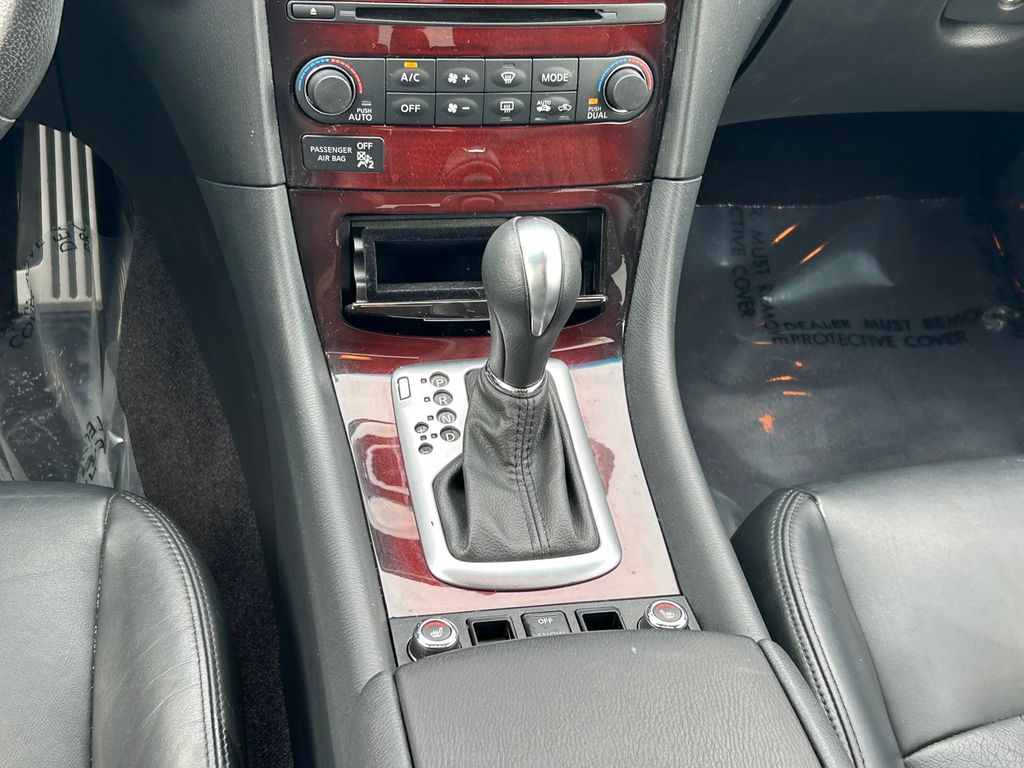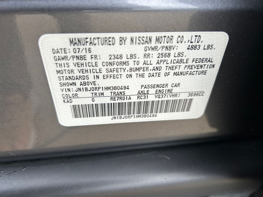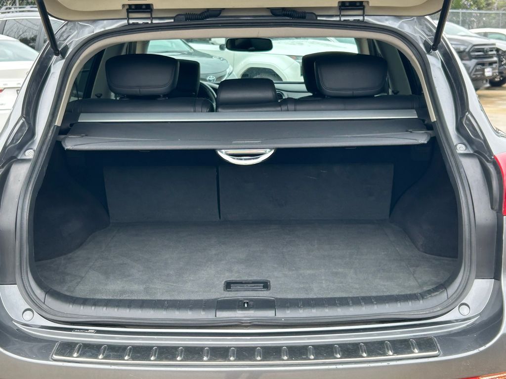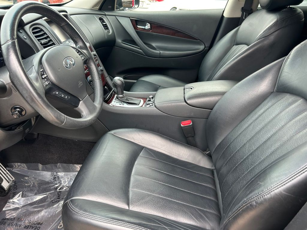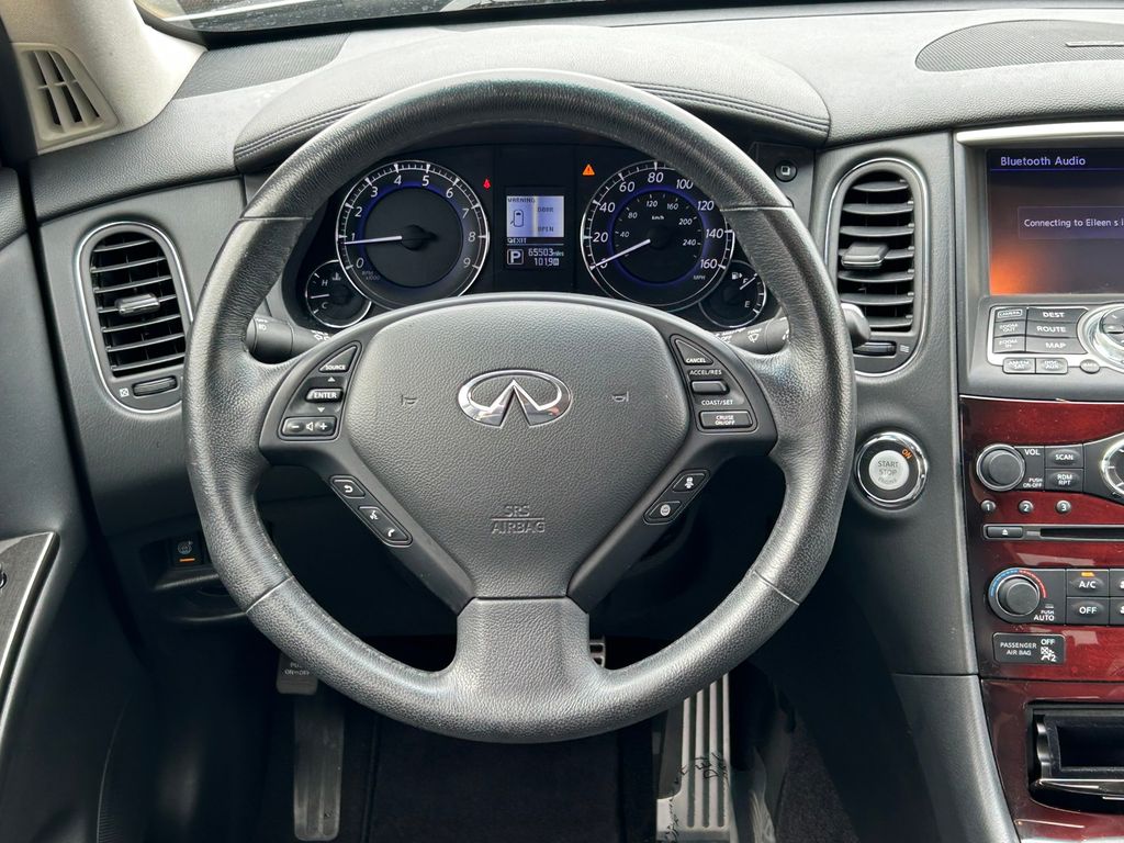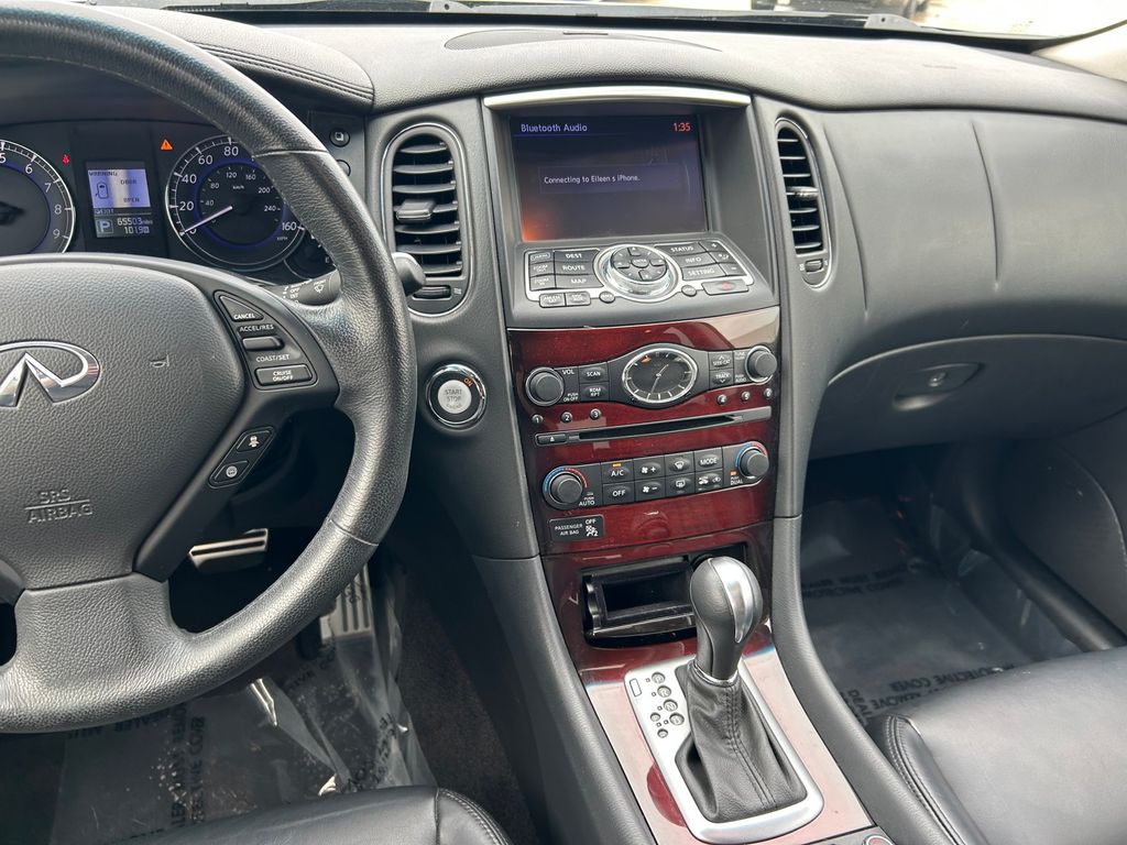 19" x 8.5" Split 5-Spoke Aluminum-Alloy Wheels, 2-Way Power Driver's Seat Lumbar Support, 3.133 Axle Ratio, 4-Wheel Disc Brakes, 6 Speakers, 8-Way Power Front-Passenger's Seat, ABS brakes, Activation Disclaimer, Advanced Climate Control System, Air Conditioning, Alloy wheels, Aluminum Pedals, Aluminum Roof Rails, AM/FM radio: SiriusXM, Anti-whiplash front head restraints, Around View Monitor (AVM), Auto-Dimming Inside Mirror, Automatic temperature control, Blind Spot Warning, Bose 11-Speaker Premium Audio System, Brake assist, Bumpers: body-color, CD player, Coat Hanger On Driver's Seat Head Restraint, Delay-off headlights, Deluxe Touring Package, Driver door bin, Driver vanity mirror, Dual front impact airbags, Dual front side impact airbags, Dual Occupant Memory System For Driver's Seat, Electronic Stability Control, Forward Collision Warning (FCW), Four wheel independent suspension, Front anti-roll bar, Front Bucket Seats, Front Center Armrest, Front dual zone A/C, Front fog lights, Front reading lights, Heated door mirrors, Heated Front Bucket Seats, Heated front seats, High-Intensity Discharge Xenon Headlights, HomeLink Universal Transceiver, Illuminated entry, Illuminated Kick Plates, INFINITI Navigation System, Intelligent Brake Assist (IBA), Intelligent Cruise Control, Lane Departure Warning System, Leather Shift Knob, Leather steering wheel, Leather-Appointed Seat Trim, Literature Kit, Low tire pressure warning, Maple Interior Accents, Occupant sensing airbag, Outside Mirrors w/Reverse Tilt-Down Feature, Outside temperature display, Overhead airbag, Overhead console, Panic alarm, Passenger door bin, Passenger vanity mirror, Power door mirrors, Power driver seat, Power moonroof, Power passenger seat, Power steering, Power Tilt & Telescopic Steering Column, Power Up-Folding 2nd Row Seats, Power windows, Premium Package, Premium Plus Package, Premium Stitching On Meter Hood, Radio data system, Radio: AM/FM/CD w/6 Speaker Audio System, Radio: AM/FM/CD/DVD w/MP3 Playback Capability, Rear anti-roll bar, Rear reading lights, Rear seat center armrest, Rear window defroster, Rear window wiper, Remote keyless entry, Security system, Speed control, Speed-sensing steering, Speed-Sensitive Wipers, Splash Guards (Set of 4), Split folding rear seat, Spoiler, Steering wheel mounted audio controls, Streaming Audio via Bluetooth Wireless Technology, Tachometer, Technology Package, Telescoping steering wheel, Tilt steering wheel, Traction control, Trip computer, Turn signal indicator mirrors, Variably intermittent wipers, Wheels: 18" x 8.0" 8-Spoke Aluminum-Alloy.