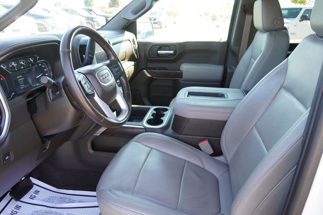 APPLE CAR PLAY, ANDROID AUTO, BLUETOOTH, LEATHER INTERIOR, ALLOY WHEELS, BACK UP CAMERA, BLIND SPOT MONITOR, LANE DEPARTURE, POWER DRIVER' SEAT, POWER PASSENGER SEAT, HEATED SEATS, LCD DISPLAY CREEN, Sierra 1500 SLT, 4D Crew Cab, Summit White, 12-Volt Rear Auxiliary Power Outlet, 120-Volt Bed Mounted Power Outlet, 120-Volt Instrument Panel Power Outlet, 170 Amp Alternator, 2 USB Ports, 2 USB Ports (1st Row), 20" x 9" Polished Aluminum Wheels, Auxiliary External Transmission Oil Cooler, Chrome Assist Steps, Chrome Grille, Color-Keyed Carpeting Floor Covering, Compass, Deep-Tinted Glass, Delay-off headlights, Driver Alert Package I, Electric Rear-Window Defogger, Electrical Lock Control Steering Column, Floor Mounted Console, Front Bucket Seats, Front fog lights, Front Frame-Mounted Black Recovery Hooks, Fully automatic headlights, GMC 4G LTE, GMC Connected Access, HD Radio, Heated 2nd Row Outboard Seats, Heated Driver & Front Passenger Seating, Heavy-Duty Rear Locking Differential, Hitch Guidance, Hitch Guidance w/Hitch View, In-Vehicle Trailering App, Integrated Trailer Brake Controller, Keyless Open & Start, Lane Change Alert w/Side Blind Zone Alert, LED Cargo Area Lighting, Manual Tilt-Wheel & Telescoping Steering Column, OnStar & GMC Connected Services Capable, Perimeter Lighting, Power Door Locks, Power Front Passenger Windows w/Express Up/Down, Power Front Windows w/Driver Express Up/Down, Power Rear Windows w/Express Down, Power Sliding Rear Window w/Rear Defogger, Preferred Equipment Group 4SA, Rear Cross Traffic Alert, Rear Dual USB Charging-Only Ports, Rear Wheelhouse Liners, Remote Vehicle Starter System, SLT Convenience Package, Steering Wheel Audio Controls, Texas Edition Badging, Texas Edition SLT Premium Package, Theft Deterrent System (Unauthorized Entry), Trailering Package, Ultrasonic Front & Rear Park Assist, Universal Home Remote, Ventilated Driver & Front Passenger Seats.