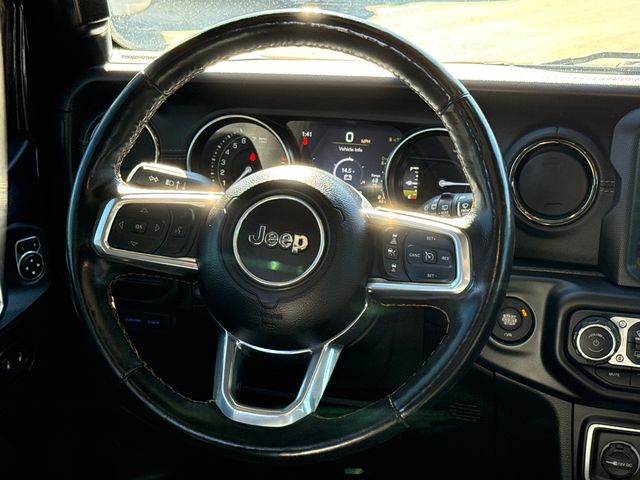 2021 Jeep Wrangler Unlimited Sahara High Altitude 4xe 4D Sport Utility Black Clearcoat 2.0L I4 DOHC 8-Speed Automatic 4WD This vehicle comes well equipped with Advanced Safety Group (Adaptive Cruise Control w/Stop, Advanced Brake Assist, Auto High Beam Headlamp Control, and Full Speed Forward Collision Warning Plus), Cold Weather Group (Heated Front Seats, Heated Steering Wheel, and Remote Start System), High Altitude Package, Quick Order Package 29N High Altitude (Blue Tow Hooks, Body Color 3-Piece Hard Top, Body Color Door Handles, Body Color Exterior Mirrors, Body Color Front Bumper, Body Color Grille w/Gloss Black Rings, Body Color Power Locking Fuel Filler Door, Body Color Rear Bumper w/Step Pads, Caramel Interior Accents, Freedom Panel Storage Bag, Leather Trimmed Bucket Seats, Leather Wrapped Park Brake Handle, Premium Dark Exterior Accents, Rear Window Defroster, Rear Window Wiper/Washer, Remote Proximity Keyless Entry, Summit Badging, and Wrapped I/P Bezel w/Caramel Stitch), Safety Group (Blind Spot & Cross Path Detection and ParkSense Rear Park Assist System), Trail Rail Management System (Cargo Compartment Floor Mat), Trailer Tow & HD Electrical Group (7 & 4 Pin Wiring Harness, 700 Amp Maintenance Free Battery, Auxiliary Switches, and Class II Receiver Hitch), Wrangler Unlimited Sahara High Altitude 4xe, 4D Sport Utility, 4WD, Black Clearcoat, Black Leather, and Navigation System Advanced Safety Group (Adaptive Cruise Control w/Stop, Advanced Brake Assist, Auto High Beam Headlamp Control, and Full Speed Forward Collision Warning Plus), Cold Weather Group (Heated Front Seats, Heated Steering Wheel, and Remote Start System), High Altitude Package, Quick Order Package 29N High Altitude (Blue Tow Hooks, Body Color 3-Piece Hard Top, Body Color Door Handles, Body Color Exterior Mirrors, Body Color Front Bumper, Body Color Grille w/Gloss Black Rings, Body Color Power Locking Fuel Filler Door, Body Color Rear Bumper w/Step Pads, Caramel Interior Accents, Freedom Panel Storage Bag, Leather Trimmed Bucket Seats, Leather Wrapped Park Brake Handle, Premium Dark Exterior Accents, Rear Window Defroster, Rear Window Wiper/Washer, Remote Proximity Keyless Entry, Summit Badging, and Wrapped I/P Bezel w/Caramel Stitch), Safety Group (Blind Spot & Cross Path Detection and ParkSense Rear Park Assist System), Trail Rail Management System (Cargo Compartment Floor Mat), Trailer Tow & HD Electrical Group (7 & 4 Pin Wiring Harness, 700 Amp Maintenance Free Battery, Auxiliary Switches, and Class II Receiver Hitch), Wrangler Unlimited Sahara High Altitude 4xe, 4D Sport Utility, 4WD, Black Clearcoat, Black Leather, Navigation System, 3.73 Rear Axle Ratio, 4-Wheel Disc Brakes, 9 Speakers, ABS brakes, Air Conditioning, Alloy wheels, AM/FM radio, Anti-Spin Differential Rear Axle, Apple CarPlay/Android Auto, Auto-dimming Rear-View mirror, Automatic temperature control, Brake assist, Compass, Delay-off headlights, Driver door bin, Driver vanity mirror, Dual front impact airbags, Dual front side impact airbags, Electronic Stability Control, Emergency communication system: SiriusXM Guardian, Front anti-roll bar, Front Bucket Seats, Front Center Armrest w/Storage, Front dual zone A/C, Front fog lights, Front License Plate Bracket, Front reading lights, Fully automatic headlights, Garage door transmitter, Heated door mirrors, Illuminated entry, Integrated roll-over protection, Leather Shift Knob, Leather steering wheel, Leather Trimmed Seats w/Sahara Logo, Low tire pressure warning, Manufacturer's Statement of Origin, MOPAR All-Weather Floor Mats (DISC), MOPAR Grab Handle Kit, MOPAR Hardtop Headliner, Occupant sensing airbag, Outside temperature display, Panic alarm, ParkView Rear Back-Up Camera, Passenger door bin, Passenger vanity mirror, Power door mirrors, Power steering, Power windows, Radio data system, Radio: Uconnect 4C Nav w/8.4" Display, Rear anti-roll bar, Rear reading lights, Rear seat center armrest, Remote keyless entry, Security system,