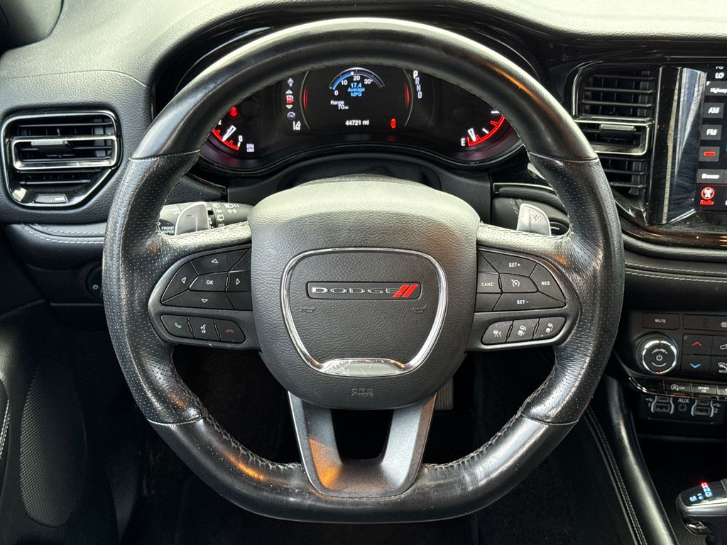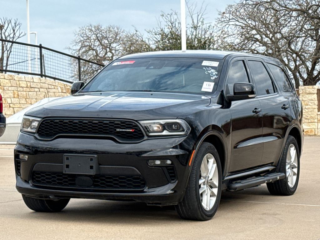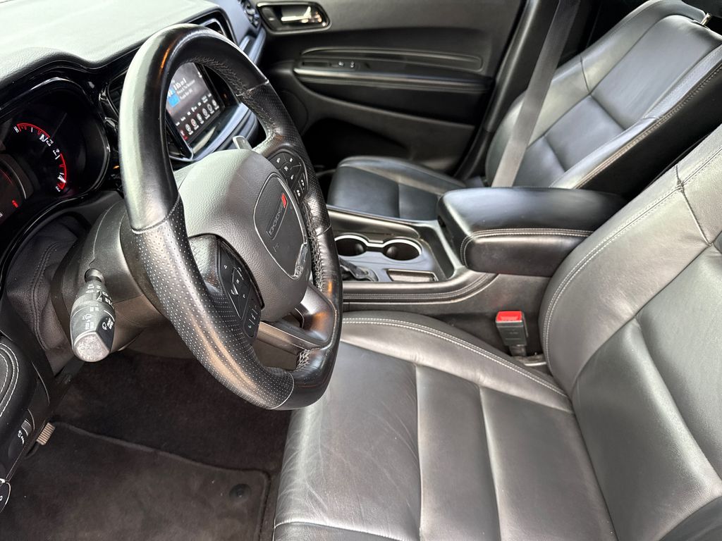 Clean CARFAX. 2022 Dodge Durango GT Plus 4D Sport Utility DB Black Crystal Clearcoat 3.6L V6 24V VVT 8-Speed Automatic RWD This vehicle comes well equipped with Quick Order Package 2BE GT Plus (#2 Seat Foam Cushion, 115V Auxiliary Power Outlet, 180 Amp Alternator, Adaptive Cruise Control w/Stop, Advanced Brake Assist, Auto-Dimming Exterior Driver Mirror, Body Color Exterior Mirrors, Bright Cargo Area Scuff Pads, Bright Front Door Sill Scuff Pads, Dual Remote USB Port - Charge Only, Exterior Mirrors w/Heating Element, Exterior Mirrors w/Memory, Exterior Mirrors w/Supplemental Signals, Full Speed Forward Collision Warning Plus, Heated Second Row Seats, Lane Departure Warning Plus, Leather Suede Bucket Seats, Power 6x9 Multi-Function Foldaway Mirrors, Power 8-Way Driver Memory 6-Way Passenger Seats, Power Driver/Passenger 4-Way Lumbar Adjust, Premium Door Trim Panel, Radio/Driver Seat/Mirrors Memory, Rain Sensitive Windshield Wipers, Security Alarm, Sun Visors w/Illuminated Vanity Mirrors, Tungsten Accent Stitching, and Universal Garage Door Opener), Durango GT Plus, 4D Sport Utility, 3.6L V6 24V VVT, RWD, DB Black Crystal Clearcoat, Black Leather, GPS Navigation, and Navigation System Quick Order Package 2BE GT Plus (#2 Seat Foam Cushion, 115V Auxiliary Power Outlet, 180 Amp Alternator, Adaptive Cruise Control w/Stop, Advanced Brake Assist, Auto-Dimming Exterior Driver Mirror, Body Color Exterior Mirrors, Bright Cargo Area Scuff Pads, Bright Front Door Sill Scuff Pads, Dual Remote USB Port - Charge Only, Exterior Mirrors w/Heating Element, Exterior Mirrors w/Memory, Exterior Mirrors w/Supplemental Signals, Full Speed Forward Collision Warning Plus, Heated Second Row Seats, Lane Departure Warning Plus, Leather Suede Bucket Seats, Power 6x9 Multi-Function Foldaway Mirrors, Power 8-Way Driver Memory 6-Way Passenger Seats, Power Driver/Passenger 4-Way Lumbar Adjust, Premium Door Trim Panel, Radio/Driver Seat/Mirrors Memory, Rain Sensitive Windshield Wipers, Security Alarm, Sun Visors w/Illuminated Vanity Mirrors, Tungsten Accent Stitching, and Universal Garage Door Opener), Durango GT Plus, 4D Sport Utility, 3.6L V6 24V VVT, RWD, DB Black Crystal Clearcoat, Black Leather, GPS Navigation, Navigation System, 3.27 Rear Axle Ratio, 3rd row seats: split-bench, 4-Wheel Disc Brakes, 6 Speakers, ABS brakes, Air Conditioning, Alloy wheels, AM/FM radio: SiriusXM, Anti-whiplash front head restraints, Apple CarPlay, Apple CarPlay/Android Auto, Auto-dimming Rear-View mirror, Auto-leveling suspension, Automatic temperature control, Brake assist, Bumpers: body-color, Cloth Bucket Seats w/Shift Insert, Compass, Delay-off headlights, Driver door bin, Driver vanity mirror, Dual front impact airbags, Dual front side impact airbags, Electronic Stability Control, For More Info, Call 800-643-2112, Four wheel independent suspension, Front anti-roll bar, Front Bucket Seats, Front Center Armrest w/Storage, Front dual zone A/C, Front fog lights, Front reading lights, Fully automatic headlights, Google Android Auto, GPS Antenna Input, Heated door mirrors, Heated front seats, Heated steering wheel, Illuminated entry, Integrated Center Stack Radio, Integrated Voice Command w/Bluetooth, Knee airbag, Leather steering wheel, Low tire pressure warning, Mopar Black Tubular Side Steps, Occupant sensing airbag, Outside temperature display, Overhead airbag, Overhead console, Panic alarm, ParkView Rear Back-Up Camera, Passenger door bin, Passenger vanity mirror, Power door mirrors, Power driver seat, Power Liftgate, Power steering, Power windows, Radio data system, Radio: Uconnect 4 w/8.4" Display, Rear air conditioning, Rear anti-roll bar, Rear Load Leveling Suspension, Rear reading lights, Rear seat center armrest, Rear window defroster, Rear window wiper, Remote keyless entry, SiriusXM Radio Service, SiriusXM Satellite Radio, Speed control, Speed-sensing steering, Speed-Sensitive Wipers, Split folding rear seat, Spoiler, Steering wheel mounted audio controls, Tachome
