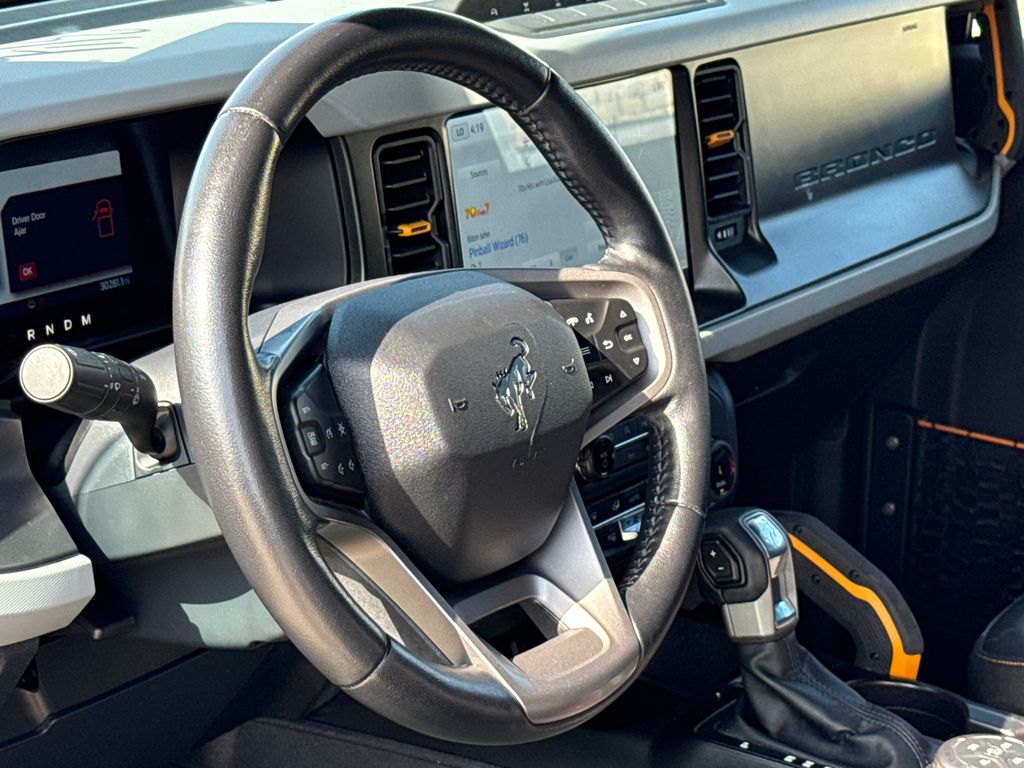 CARFAX One-Owner. 2022 Ford Bronco Badlands 4D Sport Utility Gray Metallic 2.3L EcoBoost I-4 10-Speed Automatic 4WD This vehicle comes well equipped with Equipment Group 333A High Package (12" LCD Capacitive Touchscreen w/Swipe Capability, 2-Door Intelligent Access w/Lock/Unlock, 360-Degree Camera, Additional Sound Deadening, Ambient Footwell Lighting, Auto-Dimming Interior Rear-View Mirror, Connected Navigation, Dr & Pass Illuminated Sliding Visor Vanity Mirrors, Dual-Zone Electronic Automatic Temperature Control, Enhanced Voice Recognition, Front Parking Sensors, Front Row Heated Seats, Information on Demand Panel, Power Outlet - Back Side of Center Floor Console, Rear Parking Sensors, and Sideview Mirrors), Sasquatch Package (4.7 Final Drive Ratio, High Clearance Fender Flares, High Clearance Suspension, Position-Sensitive Bilstein Shock Absorbers, and Wheels: 17" Black High Gloss-Painted Aluminum), Bronco Badlands, 4D Sport Utility, 2.3L EcoBoost I-4, 4WD, Gray Metallic, and Black Onyx Leather Equipment Group 333A High Package (12" LCD Capacitive Touchscreen w/Swipe Capability, 2-Door Intelligent Access w/Lock/Unlock, 360-Degree Camera, Additional Sound Deadening, Ambient Footwell Lighting, Auto-Dimming Interior Rear-View Mirror, Connected Navigation, Dr & Pass Illuminated Sliding Visor Vanity Mirrors, Dual-Zone Electronic Automatic Temperature Control, Enhanced Voice Recognition, Front Parking Sensors, Front Row Heated Seats, Information on Demand Panel, Power Outlet - Back Side of Center Floor Console, Rear Parking Sensors, and Sideview Mirrors), Sasquatch Package (4.7 Final Drive Ratio, High Clearance Fender Flares, High Clearance Suspension, Position-Sensitive Bilstein Shock Absorbers, and Wheels: 17" Black High Gloss-Painted Aluminum), Bronco Badlands, 4D Sport Utility, 2.3L EcoBoost I-4, 4WD, Gray Metallic, Black Onyx Leather, 4-Wheel Disc Brakes, 6 Speakers, ABS brakes, Air Conditioning, Alloy wheels, AM/FM radio: SiriusXM with 360L, AM/FM Stereo, Auto High-Beam Headlamps, Auto High-beam Headlights, BLIS Blind Spot Information System, Brake assist, Carbonized Gray Molded-In-Color Hard Top, Compass, Delay-off headlights, Driver door bin, Driver vanity mirror, Dual front impact airbags, Dual front side impact airbags, Electronic Stability Control, Emergency communication system: 911 Assist, Exterior Parking Camera Rear, Ford Performance Heavy-Duty Modular Front Bumper, Front anti-roll bar, Front Bucket Seats, Front Center Armrest, Front License Plate Bracket, Front reading lights, Front Row Top Panels Storage Bag, Front wheel independent suspension, Fully automatic headlights, Hard Top Sound Deadening Headliner, Heated door mirrors, Illuminated entry, Integrated roll-over protection, Keyless Entry Keypad, Lane-Keeping System, Leather Shift Knob, Low tire pressure warning, Marine Grade Vinyl Bucket Seats, Occupant sensing airbag, Outside temperature display, Overhead airbag, Overhead console, Panic alarm, Passenger door bin, Passenger vanity mirror, Power door mirrors, Power steering, Power windows, Pre-Collision Assist w/Automatic Emergency Braking, Radio data system, Rear-View Camera, Rear-Window Defroster & Washer, Remote keyless entry, Security system, SiriusXM Radio w/360L, Speed control, Split folding rear seat, Steering wheel mounted audio controls, SYNC 4, Tachometer, Telescoping steering wheel, Tilt steering wheel, Traction control, Trip computer, Variably intermittent wipers, Voltmeter, and Wheels: 17" Machined Carbonized Aluminum. For more information contact one of our Internet Managers at 682-498-8390 to set up your VIP Test Drive.. At SHOTTENKIRK CDJR Granbury located in Granbury, TX all of our Pre-Owned vehicles go through a 100 point plus inspection. The oil and filter are changed, complete brake inspection, tire rotation, safety inspection and all fluid levels are topped off. If we find anything that needs attention we address the issue and fix it. So buy with confidence that you are getting a quality