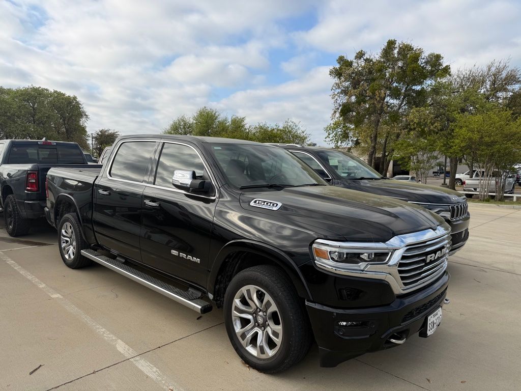 Clean CARFAX. CARFAX One-Owner. 2022 Ram 1500 Laramie Longhorn 4D Crew Cab Diamond Black Crystal Pearlcoat HEMI 5.7L V8 Multi Displacement VVT 8-Speed Automatic 4WD This vehicle comes well equipped with Body Color Bumper Group (Body Color Front Bumper and Body Color Rear Bumper w/Step Pads), Quick Order Package 27K Longhorn, 1500 Laramie Longhorn, 4D Crew Cab, HEMI 5.7L V8 Multi Displacement VVT, 4WD, Diamond Black Crystal Pearlcoat, Black/New Saddle Leather, GPS Navigation, and Navigation System Body Color Bumper Group (Body Color Front Bumper and Body Color Rear Bumper w/Step Pads), Quick Order Package 27K Longhorn, 1500 Laramie Longhorn, 4D Crew Cab, HEMI 5.7L V8 Multi Displacement VVT, 4WD, Diamond Black Crystal Pearlcoat, Black/New Saddle Leather, GPS Navigation, Navigation System, #1 Seat Foam Cushion, 10 Speakers, 3 Rear Seat Head Restraints, 3.21 Rear Axle Ratio, 4 Way Front Headrests, 4-Wheel Disc Brakes, 48V Belt Starter Generator, 4G LTE Wi-Fi Hot Spot, ABS brakes, Adjustable pedals, Air Conditioning, Alloy wheels, AM/FM radio: SiriusXM, Anti-Spin Differential Rear Axle, Apple CarPlay, Apple CarPlay/Android Auto, Audio memory, Auto High-beam Headlights, Auto-dimming door mirrors, Auto-dimming Rear-View mirror, Automatic temperature control, Brake assist, Bucket Seats, Bumpers: chrome, Chrome Exterior Mirrors, Compass, Connected Travel & Traffic Services, Connectivity - US/Canada, Delay-off headlights, Disassociated Touchscreen Display, Driver door bin, Driver Seat Memory, Driver vanity mirror, Dual front impact airbags, Dual front side impact airbags, Electronic Stability Control, Exterior Mirrors Courtesy Lamps, Exterior Mirrors w/Heating Element, Exterior Mirrors w/Memory, Exterior Mirrors w/Supplemental Signals, For Details, Visit DriveUconnect.com, Front anti-roll bar, Front Bucket Seats, Front Center Armrest w/Storage, Front dual zone A/C, Front fog lights, Front License Plate Bracket, Front reading lights, Front Seat Back Map Pockets, Front wheel independent suspension, Full Length Premium Floor Console, Fully automatic headlights, Garage door transmitter, Genuine wood console insert, Genuine wood dashboard insert, Genuine wood door panel insert, Global Telematics Box Module (TBM), Google Android Auto, GPS Antenna Input, HD Radio, Heated door mirrors, Heated Front Seats, Heated front seats, Heated rear seats, Heated Second Row Seats, Heated Steering Wheel, Heated steering wheel, Heavy-Duty Engine Cooling, Illuminated entry, Integrated Center Stack Radio, Integrated Voice Command w/Bluetooth, Leather steering wheel, Leather Trimmed Bucket Seats, Low tire pressure warning, Memory seat, Occupant sensing airbag, Outside temperature display, Overhead airbag, Overhead console, Panic alarm, ParkView Rear Back-Up Camera, Passenger door bin, Passenger vanity mirror, Pedal memory, Power 4-Way Driver Lumbar Adjust, Power 4-Way Passenger Lumbar Adjust, Power 8-Way Driver & Passenger Seats, Power door mirrors, Power driver seat, Power passenger seat, Power steering, Power windows, Power-Folding Mirrors, Radio data system, Radio: Uconnect 5 Nav w/8.4" Display, Rain sensing wipers, Rear 60/40 Folding Split Recline Seat, Rear anti-roll bar, Rear seat center armrest, Rear step bumper, Rear window defroster, Remote keyless entry, Security system, SiriusXM Radio Service, SiriusXM w/360L, Speed control, Split folding rear seat, Steering wheel mounted audio controls, Tachometer, Telescoping steering wheel, Tilt steering wheel, Traction control, Trailer Brake Control, Trip computer, Turn signal indicator mirrors, USB Host Flip, Variably intermittent wipers, Ventilated Front Seats, Ventilated front seats, Voltmeter, and Wheels: 20" x 9" Aluminum Painted/PolisheD. For more information contact one of our Internet Managers at 682-498-8390 to set up your VIP Test Drive.. At SHOTTENKIRK CDJR Granbury located in Granbury, TX all of our Pre-Owned vehicles go through a 100 point plus inspection. The oil and filter are changed, complete brak
