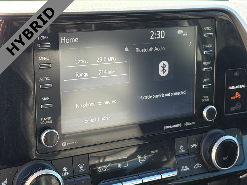 36/35 City/Highway MPG 2.5L I4 PDI Hybrid DOHC 16V LEV3-SULEV30 186hp, eCVT, FWD, ABS brakes, Active Cruise Control, Alloy wheels, Electronic Stability Control, Front dual zone A/C, Heated door mirrors, Heated Front Bucket Seats, Heated front seats, Illuminated entry, Low tire pressure warning, Power Liftgate, Power moonroof, Remote keyless entry, Traction control. This vehicle comes well equipped with 2.5L I4 PDI Hybrid DOHC 16V LEV3-SULEV30 186hp, eCVT, FWD, ABS brakes, Active Cruise Control, Alloy wheels, Electronic Stability Control, Front dual zone A/C, Heated door mirrors, Heated Front Bucket Seats, Heated front seats, Illuminated entry, Low tire pressure warning, Power Liftgate, Power moonroof, Remote keyless entry, and Traction control 2.5L I4 PDI Hybrid DOHC 16V LEV3-SULEV30 186hp, eCVT, FWD, ABS brakes, Active Cruise Control, Alloy wheels, Electronic Stability Control, Front dual zone A/C, Heated door mirrors, Heated Front Bucket Seats, Heated front seats, Illuminated entry, Low tire pressure warning, Power Liftgate, Power moonroof, Remote keyless entry, Traction control, 3rd row seats: split-bench, 4-Wheel Disc Brakes, 6 Speakers, Air Conditioning, AM/FM radio: SiriusXM, Apple CarPlay/Android Auto, Auto High-beam Headlights, Auto-dimming Rear-View mirror, Automatic temperature control, Axle Ratio TBD, Brake assist, Bumpers: body-color, Delay-off headlights, Driver door bin, Driver vanity mirror, Dual front impact airbags, Dual front side impact airbags, Emergency communication system: Safety Connect with 1-year trial, Exterior Parking Camera Rear, Four wheel independent suspension, Front anti-roll bar, Front Bucket Seats, Front Center Armrest, Front fog lights, Front reading lights, Fully automatic headlights, Garage door transmitter: HomeLink, Knee airbag, Leather Shift Knob, Occupant sensing airbag, Outside temperature display, Overhead airbag, Overhead console, Panic alarm, Passenger door bin, Passenger vanity mirror, Power door mirrors, Power driver seat, Power passenger seat, Power steering, Power windows, Radio: Audio Plus System, Rear air conditioning, Rear anti-roll bar, Rear reading lights, Rear window defroster, Rear window wiper, Reclining 3rd row seat, Roof rack: rails only, Security system, SofTex Seat Trim, Speed control, Speed-sensing steering, Split folding rear seat, Spoiler, Steering wheel mounted audio controls, Telescoping steering wheel, Tilt steering wheel, Trip computer, Turn signal indicator mirrors, Variably intermittent wipers, and Wheels: 18" Machined-Finish Alloy.
