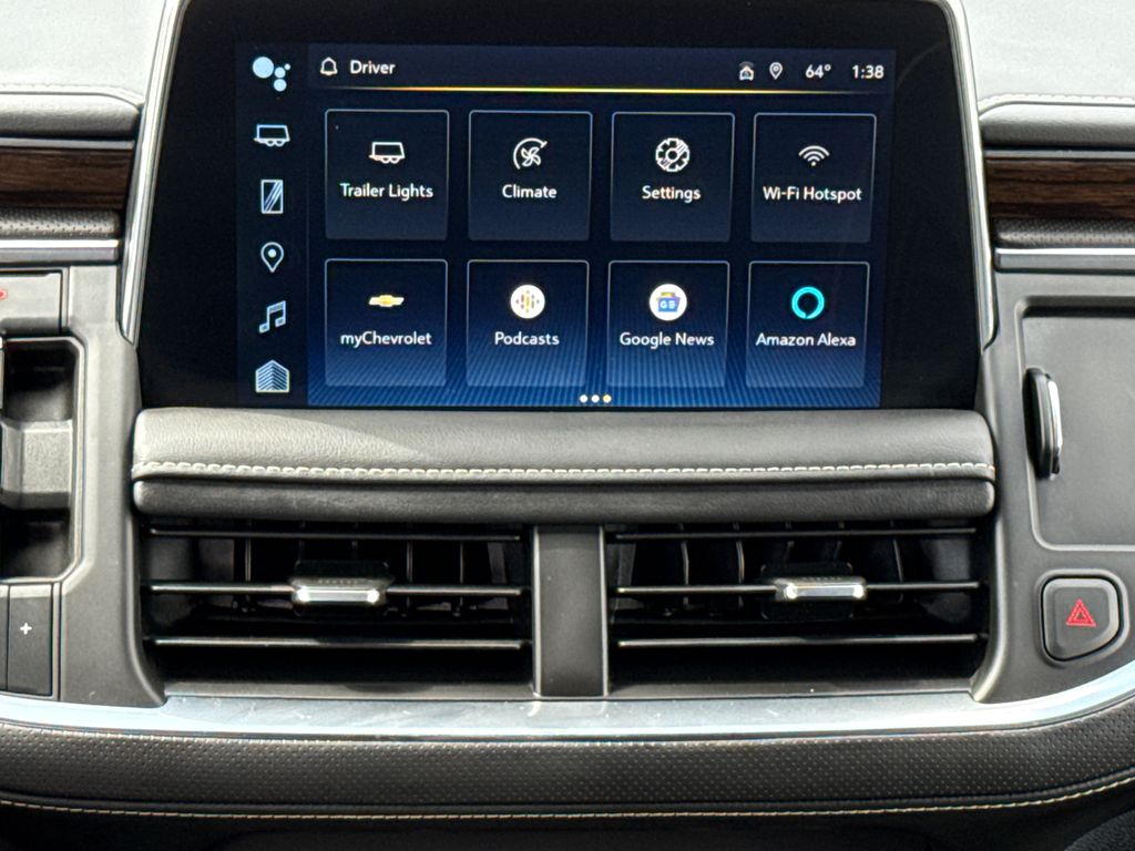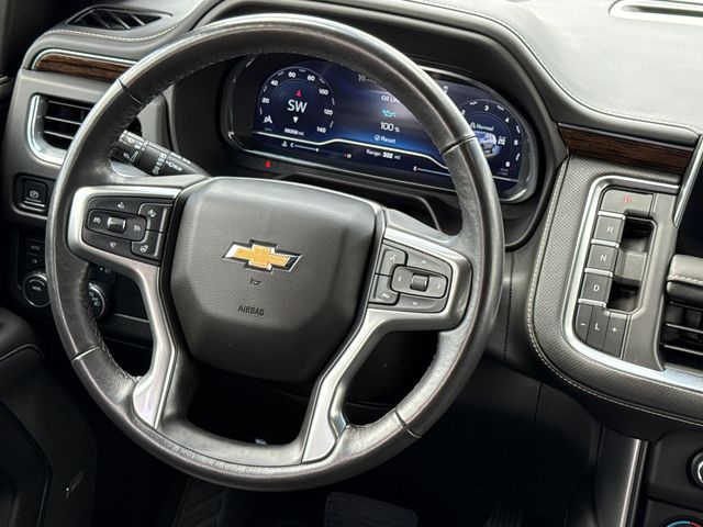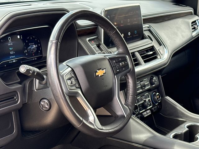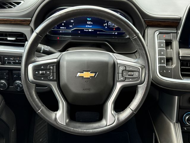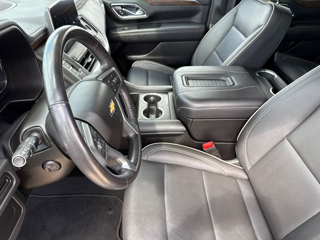 Clean CARFAX. CARFAX One-Owner. 2023 Chevrolet Tahoe Premier 4D Sport Utility Black EcoTec3 5.3L V8 10-Speed Automatic with Overdrive 4WD This vehicle comes well equipped with License Plate Front Mounting Package, Preferred Equipment Group 1LZ (1st & 2nd Row Color-Keyed Carpeted Floor Mats, 2-Speed Active Electronic AutoTrac Transfer Case, 3rd Row 60/40 Power-Folding Split-Bench Seat, Auto-Dimming Inside Rear-View Mirror, Bose 10-Speaker Centerpoint Surround Audio Sys Ft, Bright Front & Rear Door Sill Plates, Chrome Door Handles w/Body-Color Strip, Chrome Mirror Caps, Color-Keyed Carpeting Floor Covering, Driver & Front Outboard Passenger Airbags, Dual Exhaust System, Enhanced Driver Information Center, Floor Console, Hands-Free Rear Power Programmable Liftgate, Heated 2nd Row Outboard Seats, Heated Steering Wheel, Hill Descent Control, Infotainment Display, Lane Change Alert w/Side Blind Zone Alert, LED Daytime Running Lamps, Memory Settings, Outside Heated Power-Adjustable Mirrors, Power Release 2nd Row Bucket Seats, Power Tilt & Telescopic Steering Column, Rear Cross Traffic Alert, Remote Start, Safety Alert Seat, SiriusXM Radio w/360L, Universal Home Remote, Wireless Charging, and Wrapped Steering Wheel), Tahoe Premier, 4D Sport Utility, EcoTec3 5.3L V8, 4WD, Black, Jet Black Leather, and Navigation System License Plate Front Mounting Package, Preferred Equipment Group 1LZ (1st & 2nd Row Color-Keyed Carpeted Floor Mats, 2-Speed Active Electronic AutoTrac Transfer Case, 3rd Row 60/40 Power-Folding Split-Bench Seat, Auto-Dimming Inside Rear-View Mirror, Bose 10-Speaker Centerpoint Surround Audio Sys Ft, Bright Front & Rear Door Sill Plates, Chrome Door Handles w/Body-Color Strip, Chrome Mirror Caps, Color-Keyed Carpeting Floor Covering, Driver & Front Outboard Passenger Airbags, Dual Exhaust System, Enhanced Driver Information Center, Floor Console, Hands-Free Rear Power Programmable Liftgate, Heated 2nd Row Outboard Seats, Heated Steering Wheel, Hill Descent Control, Infotainment Display, Lane Change Alert w/Side Blind Zone Alert, LED Daytime Running Lamps, Memory Settings, Outside Heated Power-Adjustable Mirrors, Power Release 2nd Row Bucket Seats, Power Tilt & Telescopic Steering Column, Rear Cross Traffic Alert, Remote Start, Safety Alert Seat, SiriusXM Radio w/360L, Universal Home Remote, Wireless Charging, and Wrapped Steering Wheel), Tahoe Premier, 4D Sport Utility, EcoTec3 5.3L V8, 4WD, Black, Jet Black Leather, Navigation System, 10 Speakers, 20" x 9" Polished Aluminum Wheels, 3.23 Rear Axle Ratio, 3rd row seats: split-bench, 4-Wheel Disc Brakes, ABS brakes, Adaptive suspension, Air Conditioning, Alloy wheels, AM/FM radio: SiriusXM with 360L, Apple CarPlay/Android Auto, Auto High-beam Headlights, Auto-dimming door mirrors, Auto-dimming Rear-View mirror, Auto-leveling suspension, Automatic temperature control, Brake assist, Bumpers: body-color, Compass, Delay-off headlights, Driver door bin, Driver vanity mirror, Dual front impact airbags, Dual front side impact airbags, Electronic Stability Control, Emergency communication system: OnStar and Chevrolet connected services capable, Four wheel independent suspension, Front anti-roll bar, Front Bucket Seats, Front Center Armrest, Front dual zone A/C, Front High-Back Reclining Bucket Seats, Front reading lights, Fully automatic headlights, Garage door transmitter, Heated & Ventilated Driver & Front Passenger Seats, Heated door mirrors, Heated Driver & Front Passenger Seats, Heated front seats, Heated rear seats, Heated steering wheel, Illuminated entry, Low tire pressure warning, Magnetic Ride Control Suspension, Memory seat, Not Equip w/Ventilated Seat Cushion Blower Motor, Not Equipped w/4-Way Driver & Fr Pass Pwr Lumbar, Occupant sensing airbag, Outside temperature display, Overhead airbag, Overhead console, Panic alarm, Passenger door bin, Passenger vanity mirror, Perforated Leather Seat Trim, Power door mirrors, Power driver seat, Power Liftgate, Power passenger seat