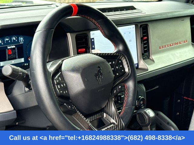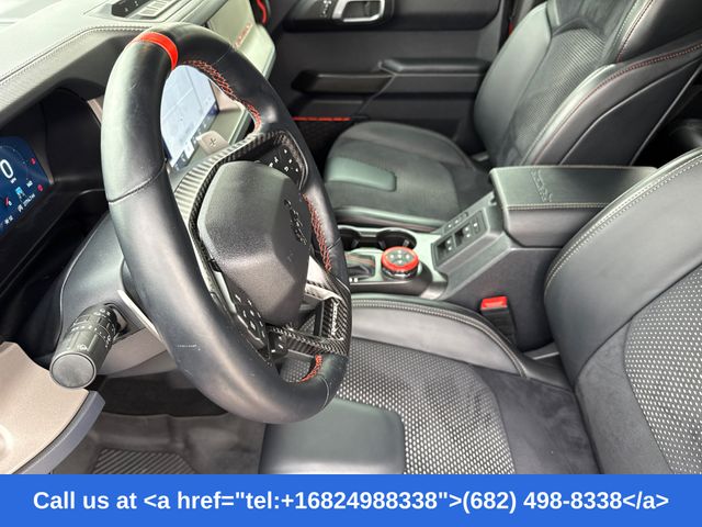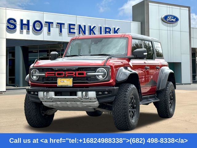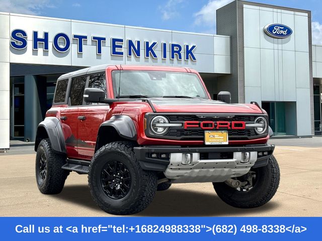 2023 Ford Bronco Hot Pepper Red Metallic Tinted Clearcoat 4D Sport Utility 4WD Raptor 10-Speed Automatic Bronco Raptor, 4D Sport Utility, 3.0L EcoBoost V6, 4WD, Hot Pepper Red Metallic Tinted Clearcoat, 10 Speakers w/Subwoofer, 2 Smart Charging USB Ports In Dashboard, 4.7 Axle Ratio, Adaptive Cruise Control, Auto-dimming Rear-View mirror, Connected Built-In Navigation, Connected Navigation, Convertible roof lining, Equipment Group 374A Lux Package, Evasive Steering Assist, Front Bucket Seats, Front Center Armrest, Fully automatic headlights, Hard Top Sound Deadening Headliner (DISC), Heated front seats, Heated Steering Wheel, Lux Package, Navigation system: Connected Navigation, Radio: B&O Sound System by Bang & Olufsen, Traction control, Universal Garage Door Opener, Wheels: 17" Black High Gloss-Painted Aluminum, Wireless Charging Pad. 3.0L EcoBoost V6
