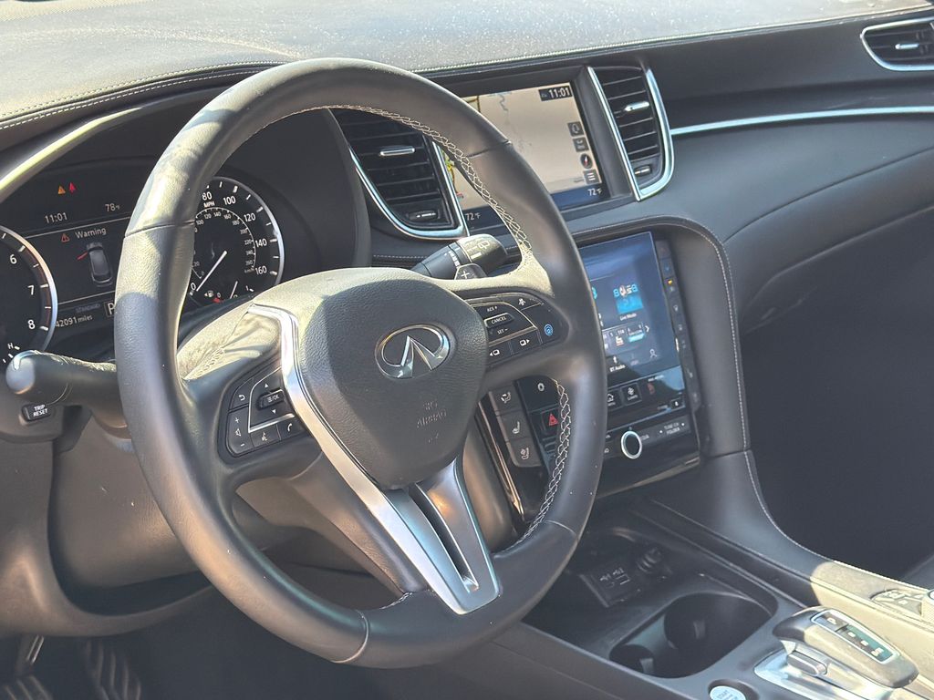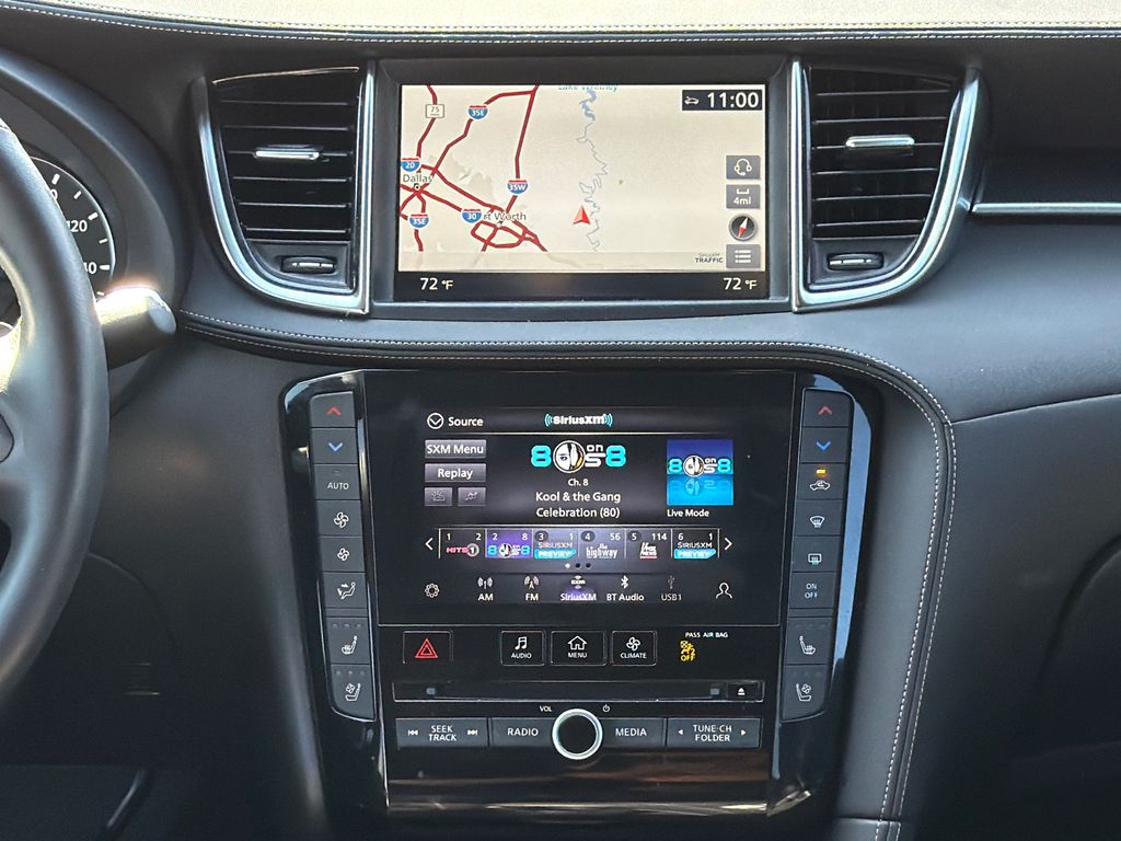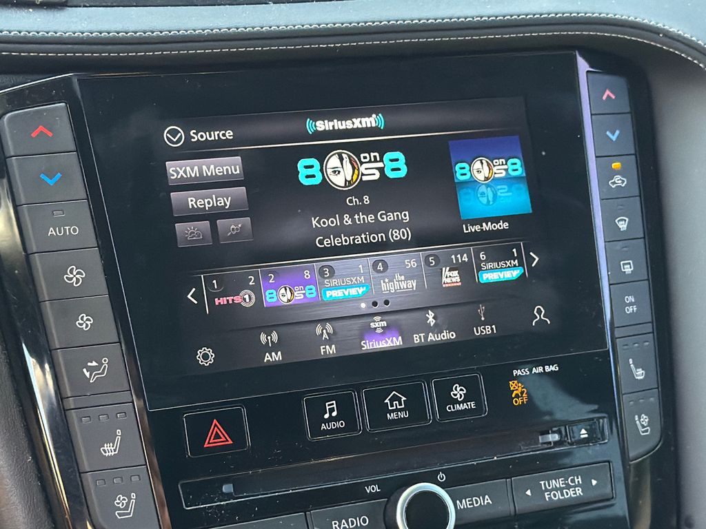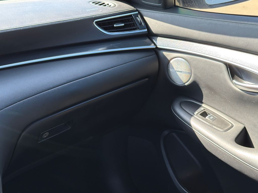 CARFAX One-Owner. Clean CARFAX. Priced below KBB Fair Purchase Price! 23/29 City/Highway MPG APPLE CAR PLAY, ANDROID AUTO, LEATHER INTERIOR, POWER MOONROOF/SUNROOF, POWER DRIVER'S SEAT, POWER PASSENGER SEAT, HEATED FRONT SEATS, COOLED FRONT SEATS, BLIND SPOT MONITOR, BACK UP CAMERA. This vehicle comes well equipped with Cargo Package, 12 Speakers, 4-Wheel Disc Brakes, 5.846 Axle Ratio, ABS brakes, Air Conditioning, Alloy wheels, AM/FM radio: SiriusXM, Auto High-beam Headlights, Auto-dimming Rear-View mirror, Automatic temperature control, Bose Premium Audio System, Brake assist, Bumpers: body-color, CD player, Climate Controlled Front Bucket Seats, Delay-off headlights, Driver door bin, Driver vanity mirror, Dual front impact airbags, Dual front side impact airbags, Electronic Stability Control, Emergency communication system: INFINITI InTouch (1-year complimentary trial), Floor Mats, Four wheel independent suspension, Front anti-roll bar, Front Bucket Seats, Front Center Armrest, Front dual zone A/C, Front fog lights, Front reading lights, Fully automatic headlights, Garage door transmitter: HomeLink, Heated door mirrors, Heated front seats, Heated steering wheel, Illuminated entry, Illuminated Kick Plates, Knee airbag, Leather Shift Knob, Leather steering wheel, Literature Kit, Low tire pressure warning, Memory seat, Navigation system: INFINITI InTouch Navigation, Occupant sensing airbag, Outside temperature display, Overhead airbag, Overhead console, Panic alarm, Passenger door bin, Passenger vanity mirror, Power door mirrors, Power driver seat, Power Liftgate, Power moonroof, Power passenger seat, Power steering, Power windows, Radio data system, Rear anti-roll bar, Rear reading lights, Rear seat center armrest, Rear side impact airbag, Rear window defroster, Rear window wiper, Remote keyless entry, Security system, Semi-Aniline Leather-Appointed Seat Trim, Speed control, Speed-sensing steering, Speed-Sensitive Wipers, Splash Guards (Set of 4), Split folding rear seat, Spoiler, Steering wheel mounted audio controls, Tachometer, Telescoping steering wheel, Tilt steering wheel, Traction control, Trip computer, Turn signal indicator mirrors, USB Charging Cable Set, Variably intermittent wipers, Ventilated front seats, Welcome Lighting w/Logo, and Wheels: 20" Black Painted Machine Finished.