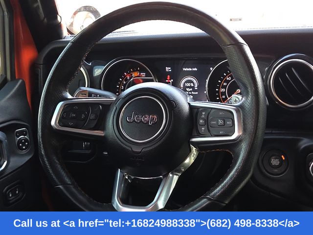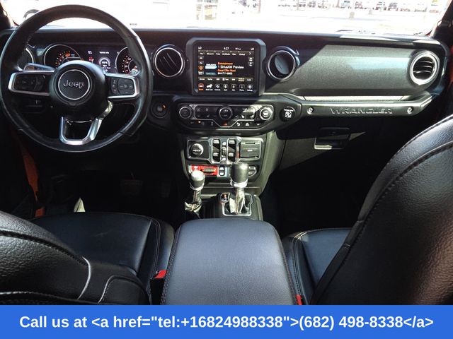 Inside, enjoy premium comfort and technology with heated leather-trimmed seats, a heated steering wheel, dual-zone automatic climate control, navigation, and Apple CarPlay & Android Auto. Open-air freedom comes standard with the removable hardtop, Freedom Panel storage bag, and classic Wrangler design.