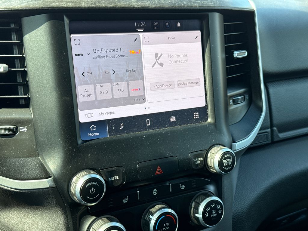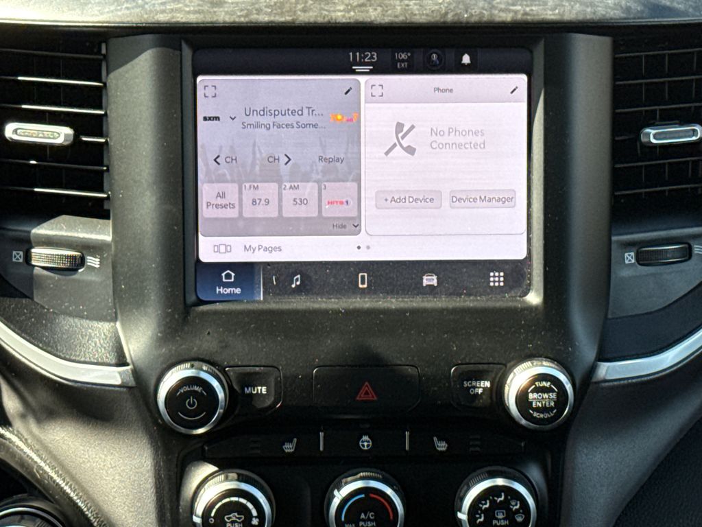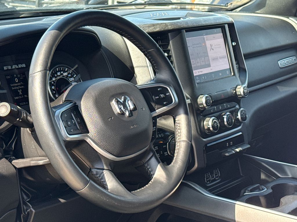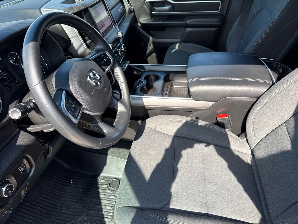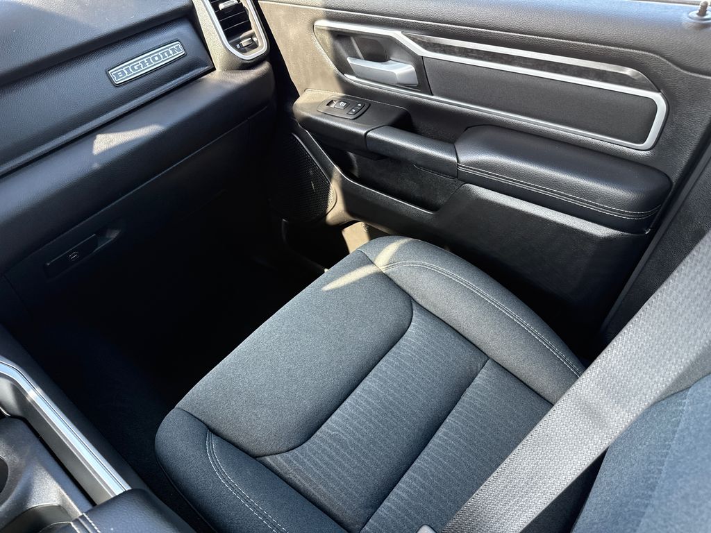 Clean CARFAX. 2023 Ram 1500 Big Horn/Lone Star 4D Crew Cab Bright White Clearcoat HEMI 5.7L V8 Multi Displacement VVT eTorque 8-Speed Automatic 4WD This vehicle comes well equipped with Big Horn Level 1 Equipment Group (2nd Row In Floor Storage Bins, 4G LTE Wi-Fi Hot Spot, 8.4" Touchscreen Display, Apple CarPlay, Auto-Dimming Exterior Driver Mirror, Auto-Dimming Rear-View Mirror, Black Exterior Mirrors, Black Premium Power Mirrors, Bluetooth Handsfree Phone & Audio, Class IV Receiver Hitch, Connectivity - US/Canada, Convex Wide-Angle Exterior Mirror Insert, Electric Shift-On-Demand Transfer Case, Exterior Mirrors Courtesy Lamps, Exterior Mirrors w/Heating Element, Exterior Mirrors w/Supplemental Signals, For Details, Visit DriveUconnect.com, For More Info, Call 800-643-2112, Front Fog Lamps, Glove Box Lamp, Google Android Auto, GPS Antenna Input, Heated Front Seats, Heated Steering Wheel, Integrated Center Stack Radio, Passenger Sun Visor w/Illuminated Mirror, Power-Folding Mirrors, Radio: Uconnect 5 W w/8.4" Display, Rear Dome w/On/Off Switch Lamp, Rear Power Sliding Window, Rear Window Defroster, SiriusXM Satellite Radio, and USB Host Flip), Quick Order Package 27Z Big Horn (Big Horn Badge), 1500 Big Horn/Lone Star, 4D Crew Cab, HEMI 5.7L V8 Multi Displacement VVT eTorque, 4WD, Bright White Clearcoat, and Black Cloth Big Horn Level 1 Equipment Group (2nd Row In Floor Storage Bins, 4G LTE Wi-Fi Hot Spot, 8.4" Touchscreen Display, Apple CarPlay, Auto-Dimming Exterior Driver Mirror, Auto-Dimming Rear-View Mirror, Black Exterior Mirrors, Black Premium Power Mirrors, Bluetooth Handsfree Phone & Audio, Class IV Receiver Hitch, Connectivity - US/Canada, Convex Wide-Angle Exterior Mirror Insert, Electric Shift-On-Demand Transfer Case, Exterior Mirrors Courtesy Lamps, Exterior Mirrors w/Heating Element, Exterior Mirrors w/Supplemental Signals, For Details, Visit DriveUconnect.com, For More Info, Call 800-643-2112, Front Fog Lamps, Glove Box Lamp, Google Android Auto, GPS Antenna Input, Heated Front Seats, Heated Steering Wheel, Integrated Center Stack Radio, Passenger Sun Visor w/Illuminated Mirror, Power-Folding Mirrors, Radio: Uconnect 5 W w/8.4" Display, Rear Dome w/On/Off Switch Lamp, Rear Power Sliding Window, Rear Window Defroster, SiriusXM Satellite Radio, and USB Host Flip), Quick Order Package 27Z Big Horn (Big Horn Badge), 1500 Big Horn/Lone Star, 4D Crew Cab, HEMI 5.7L V8 Multi Displacement VVT eTorque, 4WD, Bright White Clearcoat, Black Cloth, 3 Rear Seat Head Restraints, 3.21 Rear Axle Ratio, 4 Way Front Headrests, 4-Wheel Disc Brakes, 48V Belt Starter Generator, 6 Speakers, ABS brakes, Air Conditioning, Alloy wheels, AM/FM radio, Brake assist, Bumpers: chrome, Cloth Bench Seat, Compass, Delay-off headlights, Driver door bin, Dual front impact airbags, Dual front side impact airbags, Electronic Stability Control, Emergency communication system: SiriusXM Guardian, Front anti-roll bar, Front Center Armrest w/Storage, Front License Plate Bracket, Front reading lights, Front Seat Back Map Pockets, Front wheel independent suspension, Fully automatic headlights, Global Telematics Box Module (TBM), Heated door mirrors, Illuminated entry, Integrated Voice Command w/Bluetooth, Leather steering wheel, Low tire pressure warning, Manufacturer's Statement of Origin, MOPAR Front & Rear Rubber Floor Mats, Occupant sensing airbag, Outside temperature display, Overhead airbag, Overhead console, Panic alarm, ParkView Rear Back-Up Camera, Passenger door bin, Passenger vanity mirror, Power door mirrors, Power steering, Power windows, Radio data system, Radio: Uconnect 3 w/5" Display, RAM Grille Badge - Chrome, Rear 60/40 Folding Seat, Rear anti-roll bar, Rear seat center armrest, Rear step bumper, Remote keyless entry, Speed control, Split folding rear seat, Steering wheel mounted audio controls, Tachometer, Telescoping steering wheel, Tilt steering wheel, Traction control, Trip computer, Variably intermittent wipers, Voltmeter, and Wheels: