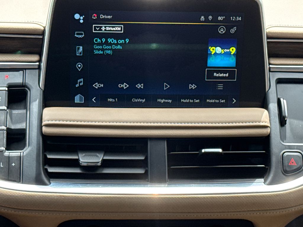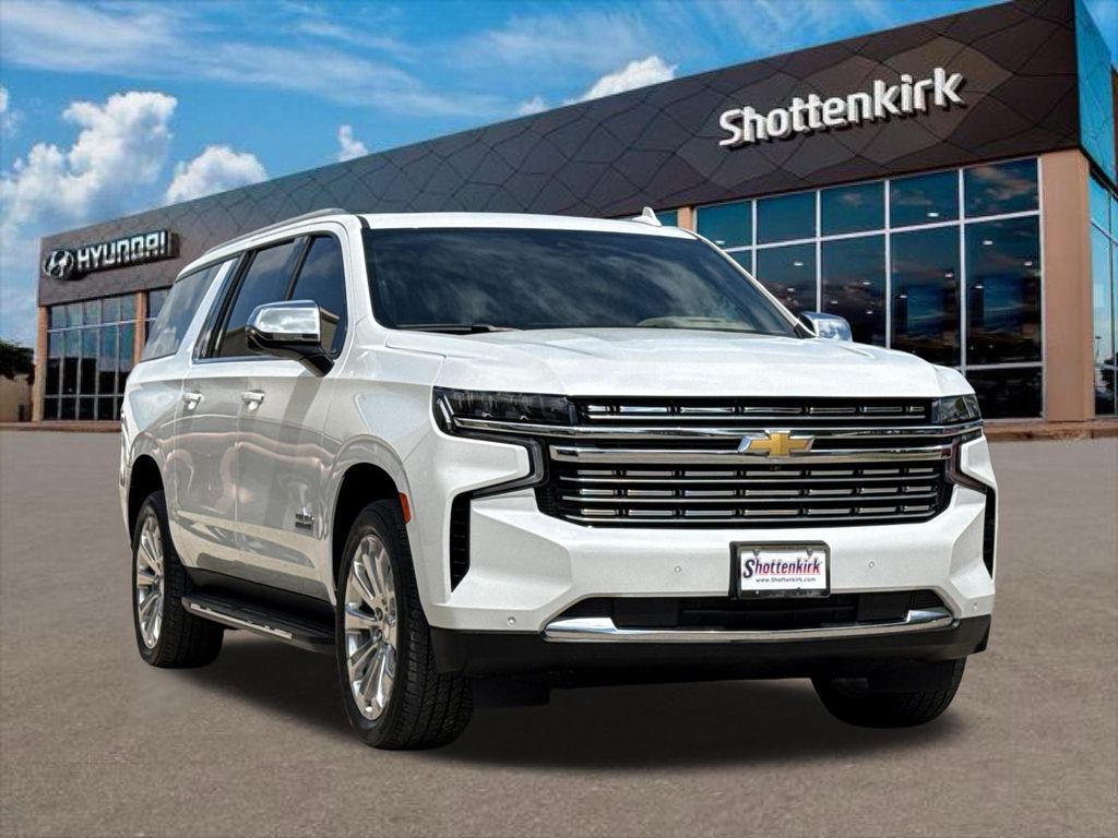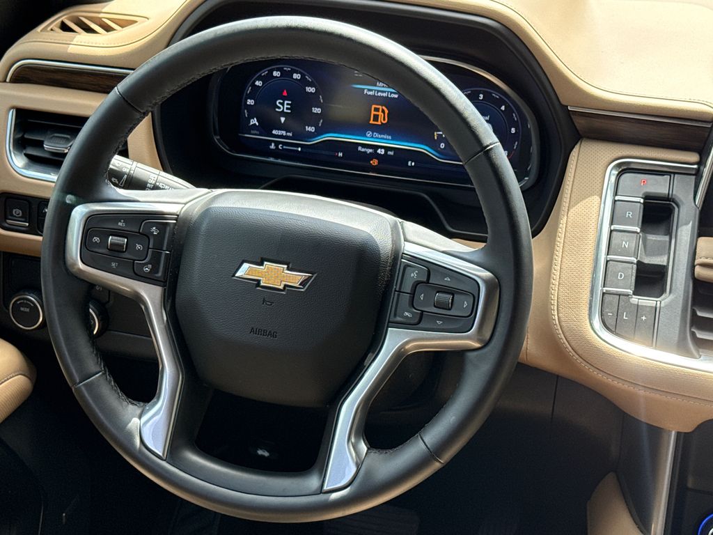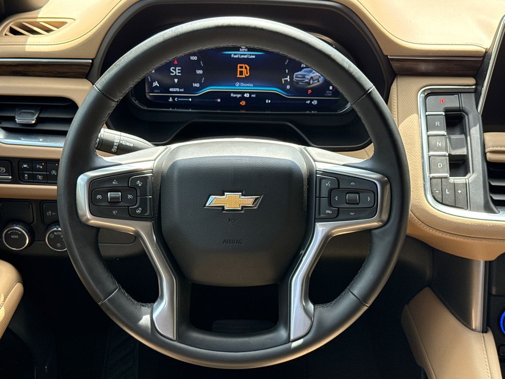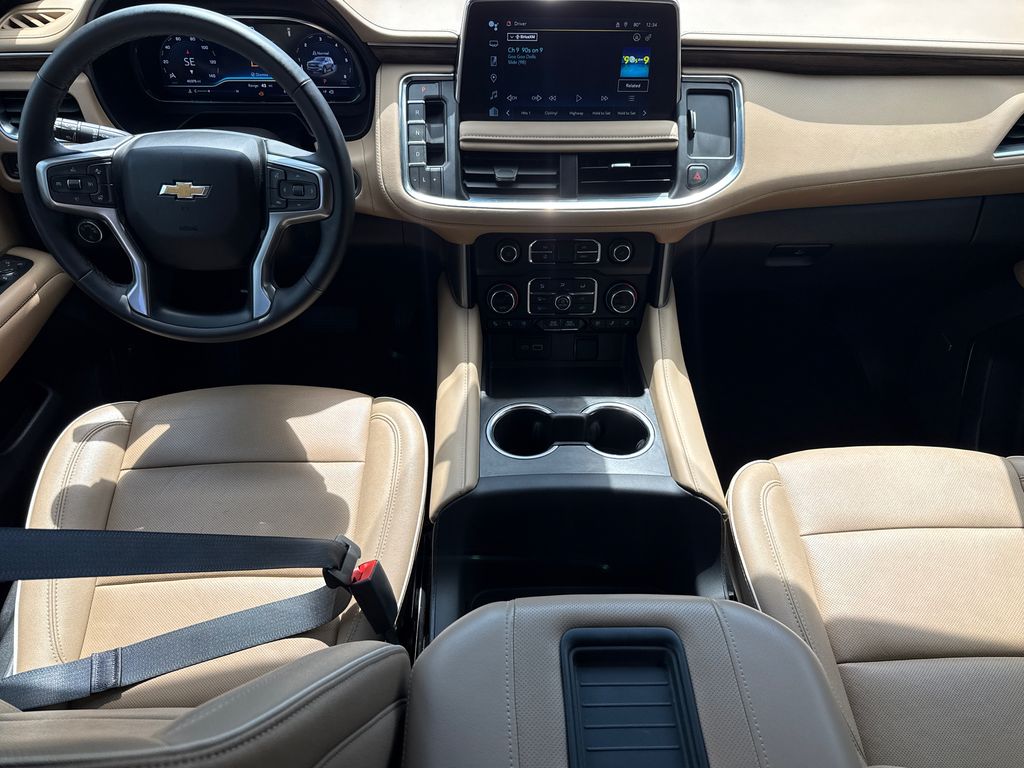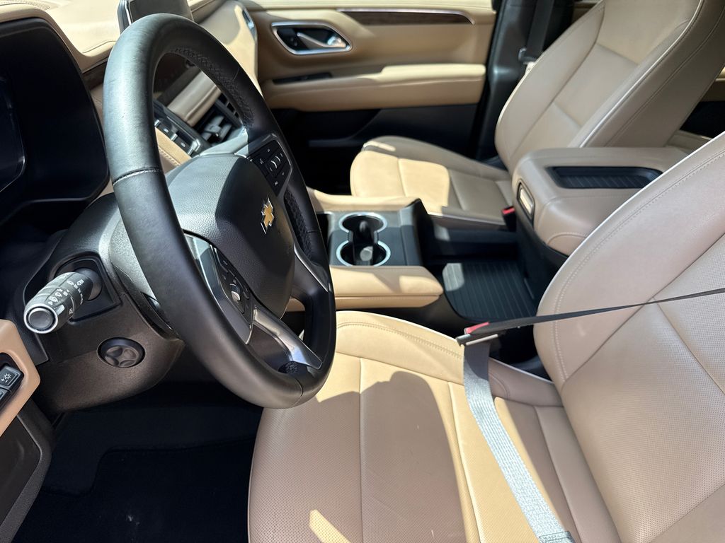 CARFAX One-Owner. APPLE CAR PLAY, ANDROID AUTO, LEATHER INTERIOR, POWER MOONROOF/SUNROOF, POWER DRIVER'S SEAT, POWER PASSENGER SEAT, HEATED FRONT SEATS, COOLED FRONT SEATS, REAR A/C, BLIND SPOT MONITOR, BACK UP CAMERA, 3RD ROW SEAT. This vehicle comes well equipped with Enhanced Display & Alert Package (15" Diagonal Multi-Color Head-Up Display, HD Surround Vision, Inside Rearview Auto-Dimming Rear Camera Mirror, Rear Camera Mirror Washer, and Rear Pedestrian Alert), License Plate Front Mounting Package, Preferred Equipment Group 1LZ (12-Way Power Driver & Passenger Seat Adjusters, 1st & 2nd Row Color-Keyed Carpeted Floor Mats, 3rd Row 60/40 Power-Folding Split-Bench, Auto-Dimming Inside Rear-View Mirror, Bose 10-Speaker Surround w/CenterPoint, Bright Front & Rear Door Sill Plates, Chrome Door Handles w/Body-Color Strip, Chrome Mirror Caps, Color-Keyed Carpeting Floor Covering, Driver & Front Outboard Passenger Airbags, Dual Exhaust System, Enhanced Driver Information Center, Floor Console, Hands-Free Rear Power Programmable Liftgate, Heated 2nd Row Outboard Seats, Heated Driver & Front Passenger Seats, Heated Steering Wheel, Infotainment Display, Lane Change Alert w/Side Blind Zone Alert, LED Daytime Running Lamps, Memory Settings, Outside Heated Power-Adjustable Mirrors, Perforated Heated & Ventilated Seats, Power Release 2nd Row Bucket Seats, Power Tilt & Telescopic Steering Column, Rear Cross Traffic Alert, Remote Start, Safety Alert Seat, SiriusXM w/360L, Universal Home Remote, Wireless Charging, and Wrapped Steering Wheel), Premium Package 2 (Adaptive Cruise Control, Dual-Pane Power Panoramic Sunroof, and Enhanced Automatic Emergency Braking), Texas Edition (Texas Edition Badging, Wheel Locks (Set of 4) (LPO), and Wheels: 22" x 9" Polished Aluminum (RVA)), 10 Speakers, 1st, 2nd & 3rd Row All-Weather Floor Liners (LPO), 20" x 9" Polished Aluminum Wheels, 3.23 Rear Axle Ratio, 3rd row seats: split-bench, 4-Wheel Disc Brakes, ABS brakes, Adaptive suspension, Air Conditioning, Alloy wheels, AM/FM radio: SiriusXM with 360L, Apple CarPlay/Android Auto, Auto High-beam Headlights, Auto-dimming door mirrors, Auto-dimming Rear-View mirror, Auto-leveling suspension, Automatic temperature control, Brake assist, Bumpers: body-color, Compass, Delay-off headlights, Driver door bin, Driver vanity mirror, Dual front impact airbags, Dual front side impact airbags, Electronic Stability Control, Emergency communication system: OnStar and Chevrolet connected services capable, Four wheel independent suspension, Front anti-roll bar, Front Bucket Seats, Front Center Armrest, Front dual zone A/C, Front reading lights, Fully automatic headlights, Garage door transmitter, Heated door mirrors, Heated front seats, Heated rear seats, Heated steering wheel, Illuminated entry, Illuminated Mirror Chevrolet Emblem (LPO), Low tire pressure warning, Magnetic Ride Control Suspension, Memory seat, Navigation System, Occupant sensing airbag, Outside temperature display, Overhead airbag, Overhead console, Panic alarm, Passenger door bin, Passenger vanity mirror, Perforated Leather Seating Surfaces, Power door mirrors, Power driver seat, Power Liftgate, Power passenger seat, Power steering, Power windows, Premium audio system: Chevrolet Infotainment 3 Premium, Radio: Chevrolet Infotainment 3 Premium System, Rain sensing wipers, Rear air conditioning, Rear anti-roll bar, Rear reading lights, Rear window defroster, Rear window wiper, Remote keyless entry, Roof rack: xxxxxx, Security system, Speed control, Speed-sensing steering, Split folding rear seat, Spoiler, Steering wheel memory, Steering wheel mounted audio controls, Tachometer, Telescoping steering wheel, Tilt steering wheel, Traction control, Trip computer, Turn signal indicator mirrors, Variably intermittent wipers, Ventilated front seats, and Voltmeter.