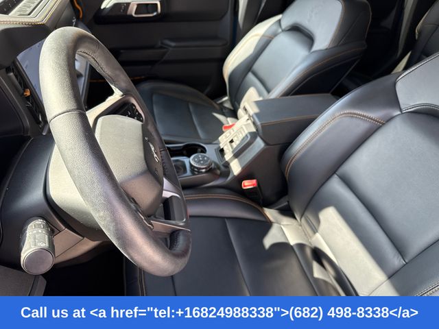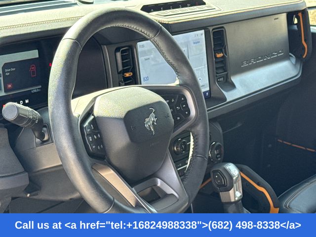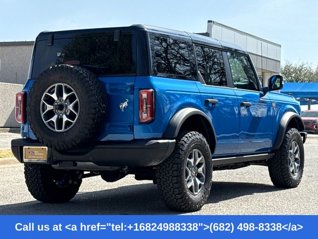 CARFAX One-Owner. Certified. 2024 Ford Bronco Blue Metallic 4D Sport Utility 4WD Badlands 10-Speed Automatic Bronco Badlands, 2.7L EcoBoost V6, 4WD, Blue Metallic, Black Onyx Leather, 10 Speakers w/Subwoofer, 2-Door Intelligent Access w/Lock/Unlock, 360-Degree Camera, 4.7 Axle Ratio, Adaptive Cruise Control, Additional Sound Deadening, Ambient Footwell Lighting, Auto-Dimming Interior Rear-View Mirror, BLIS Blind Spot Information System, Dr & Pass Illuminated Sliding Visor Vanity Mirrors, Dual Smart Charging USB Ports, Dual-Zone Electronic Automatic Temperature Control, Equipment Group 334A High/Lux Package, Evasive Steering Assist, Front Parking Sensors, Front Row Heated Seats, Fully automatic headlights, Heated Steering Wheel, Information on Demand Panel, Power Outlet - Back Side of Center Floor Console, Radio: B&O Sound System by Bang & Olufsen, Rear Parking Sensors, Sideview Mirrors, Universal Garage Door Opener, Wheels: 17" Machined Carbonized Aluminum, Wireless Charging Pad. Odometer is 16449 miles below market average! 2.7L EcoBoost V6