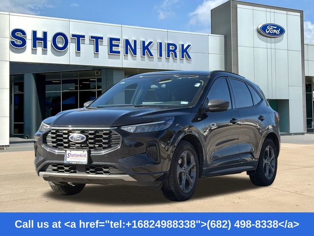 Certified. Clean CARFAX. 2024 Ford Escape Agate Black Metallic 4D Sport Utility FWD ST-Line 8-Speed Automatic Local Trade In, Escape ST-Line, 1.5L EcoBoost, FWD, Agate Black Metallic, Red / Ebony Vinyl, 3.81 Axle Ratio, Adaptive Cruise Control w/Stop-and-Go, Connected Navigation, Equipment Group 300A, Ford Co-Pilot360 Assist+, Fully automatic headlights, Power Liftgate, Rear Parking Sensor, Rear seat center armrest, Speed Sign Recognition, Spoiler, Wheels: 18" Rock Metallic Painted Aluminum. Priced below KBB Fair Purchase Price! 27/34 City/Highway MPG 1.5L EcoBoost