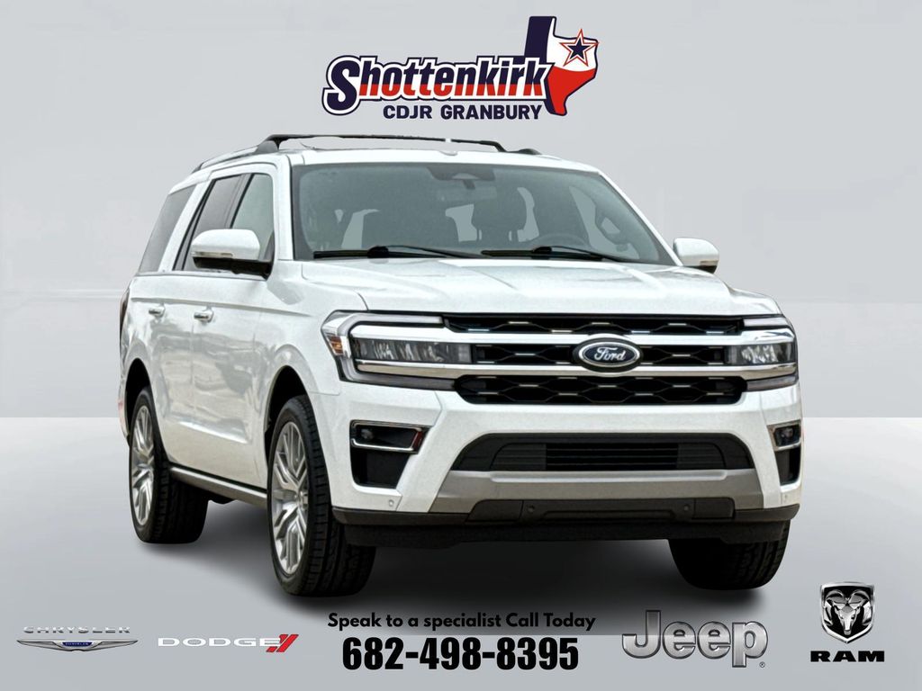 Clean CARFAX. CARFAX One-Owner. 2024 Ford Expedition Limited 4D Sport Utility Oxford White EcoBoost 3.5L V6 GTDi DOHC 24V Twin Turbocharged 10-Speed Automatic 4WD This vehicle comes well equipped with Equipment Group 302A High Package (Ebony Black Mesh Grille, Heavy-Duty Independent Suspension, Magnetic-Painted Power Deployable Running Boards, Panoramic Vista Roof, Power-Folding Sideview Mirrors w/Autofold, and Wheels: 22" 12-Spoke Polished Aluminum), Expedition Limited, 4D Sport Utility, EcoBoost 3.5L V6 GTDi DOHC 24V Twin Turbocharged, 4WD, Oxford White, and Mahogany Leather Equipment Group 302A High Package (Ebony Black Mesh Grille, Heavy-Duty Independent Suspension, Magnetic-Painted Power Deployable Running Boards, Panoramic Vista Roof, Power-Folding Sideview Mirrors w/Autofold, and Wheels: 22" 12-Spoke Polished Aluminum), Expedition Limited, 4D Sport Utility, EcoBoost 3.5L V6 GTDi DOHC 24V Twin Turbocharged, 4WD, Oxford White, Mahogany Leather, 12 Speakers, 2nd Row Power-Folding 40/20/40 Leather Bench Seat, 3.31 Axle Ratio, 360-Degree Camera w/Split View, 3rd row seats: split-bench, 4-Wheel Disc Brakes, ABS brakes, Adjustable pedals, Advanced Cargo Manager, Air Conditioning, Alloy wheels, AM/FM radio: SiriusXM with 360L, Auto High-beam Headlights, Auto-dimming door mirrors, Auto-dimming Rear-View mirror, Automatic temperature control, Brake assist, Bumpers: body-color, Compass, Connected Navigation, Delay-off headlights, Driver door bin, Driver vanity mirror, Dual front impact airbags, Dual front side impact airbags, Electronic Stability Control, Emergency communication system: SYNC 4 911 Assist, Exterior Parking Camera Rear, Four wheel independent suspension, Front anti-roll bar, Front Bucket Seats, Front Center Armrest, Front dual zone A/C, Front fog lights, Front reading lights, Fully automatic headlights, Garage door transmitter, Heated & Ventilated Leather Front Captain's Chairs, Heated door mirrors, Heated front seats, Heated rear seats, Heated steering wheel, Illuminated entry, Leather steering wheel, Low tire pressure warning, Memory seat, Navigation system: Connected Navigation, Occupant sensing airbag, Outside temperature display, Overhead airbag, Overhead console, Panic alarm, Passenger door bin, Passenger vanity mirror, Pedal memory, Power door mirrors, Power driver seat, Power Liftgate, Power moonroof, Power passenger seat, Power steering, Power windows, Radio data system, Radio: B&O Sound System by Bang & Olufsen, Rain sensing wipers, Rear air conditioning, Rear anti-roll bar, Rear reading lights, Rear window defroster, Rear window wiper, Reclining 3rd row seat, Remote keyless entry, Reverse Brake Assist, Security system, SiriusXM w/360L, Speed control, Speed-sensing steering, Speed-Sensitive Wipers, Split folding rear seat, Spoiler, Steering wheel memory, Steering wheel mounted audio controls, SYNC 4 w/Enhanced Voice Recognition, Tachometer, Telescoping steering wheel, Tilt steering wheel, Traction control, Trip computer, Turn signal indicator mirrors, Variably intermittent wipers, Ventilated front seats, Voltmeter, and Wheels: 20" Bright Machined Aluminum. For more information contact one of our Internet Managers at 682-498-8390 to set up your VIP Test Drive.. At SHOTTENKIRK CDJR Granbury located in Granbury, TX all of our Pre-Owned vehicles go through a 100 point plus inspection. The oil and filter are changed, complete brake inspection, tire rotation, safety inspection and all fluid levels are topped off. If we find anything that needs attention we address the issue and fix it. So buy with confidence that you are getting a quality vehicle. We can do a complete walk around for you over the phone. Trade ins are always welcomed. We offer financing from over 25 finance and credit unions locally and nationally. SHOTTENKIRK CDJR 4970 E HWY 377 GRANBURY TEXAS 76049.
