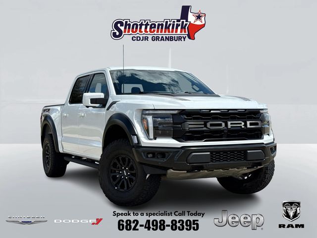 Clean CARFAX. CARFAX One-Owner. 2024 Ford F-150 Raptor 4D SuperCrew Oxford White 3.5L V6 EcoBoost 10-Speed Automatic 4WD This vehicle comes well equipped with Equipment Group 801A Standard, F-150 Raptor, 4D SuperCrew, 3.5L V6 EcoBoost, 4WD, Oxford White, Black Leather, 4-Wheel Disc Brakes, Adaptive suspension, Front Bucket Seats, Garage door transmitter, Heads-Up Display, Heated door mirrors, Heated front seats, Heated rear seats, Leather Trim Seats, Memory seat, Pedal memory, Power door mirrors, Power driver seat, Power passenger seat, Power steering, Power windows, Remote keyless entry, Steering wheel memory, Steering wheel mounted audio controls, Tough Bed Spray-In Bedliner, Twin Panel Moonroof, and Ventilated front seats Equipment Group 801A Standard, F-150 Raptor, 4D SuperCrew, 3.5L V6 EcoBoost, 4WD, Oxford White, Black Leather, 4-Wheel Disc Brakes, Adaptive suspension, Front Bucket Seats, Garage door transmitter, Heads-Up Display, Heated door mirrors, Heated front seats, Heated rear seats, Leather Trim Seats, Memory seat, Pedal memory, Power door mirrors, Power driver seat, Power passenger seat, Power steering, Power windows, Remote keyless entry, Steering wheel memory, Steering wheel mounted audio controls, Tough Bed Spray-In Bedliner, Twin Panel Moonroof, Ventilated front seats, 14 Speakers, 17" Cast Aluminum Wheels, ABS brakes, Adjustable pedals, Air Conditioning, Alloy wheels, AM/FM radio: SiriusXM with 360L, Auto High-beam Headlights, Auto tilt-away steering wheel, Auto-dimming door mirrors, Auto-dimming Rear-View mirror, Automatic temperature control, Brake assist, Bumpers: body-color, Compass, Delay-off headlights, Driver door bin, Driver vanity mirror, Dual front impact airbags, Dual front side impact airbags, Electronic Locking w/4.10 Axle Ratio, Electronic Stability Control, Emergency communication system: SYNC 4 911 Assist, Front anti-roll bar, Front Center Armrest, Front dual zone A/C, Front fog lights, Front reading lights, Front wheel independent suspension, Fully automatic headlights, Heated steering wheel, Illuminated entry, Lane Departure Warning System, Low tire pressure warning, Navigation system: Connected Navigation, Occupant sensing airbag, Outside temperature display, Overhead airbag, Overhead console, Panic alarm, Passenger door bin, Passenger vanity mirror, Radio data system, Radio: B&O Unleashed Sound System by Bang & Olufsen, Rain sensing wipers, Rear reading lights, Rear step bumper, Rear window defroster, Security system, Speed control, Speed-sensing steering, Split folding rear seat, SYNC 4 w/Enhanced Voice Recognition, Tachometer, Telescoping steering wheel, Tilt steering wheel, Traction control, Trip computer, Turn signal indicator mirrors, and Variably intermittent wipers. For more information contact one of our Internet Managers at 682-498-8390 to set up your VIP Test Drive.. At SHOTTENKIRK CDJR Granbury located in Granbury, TX all of our Pre-Owned vehicles go through a 100 point plus inspection. The oil and filter are changed, complete brake inspection, tire rotation, safety inspection and all fluid levels are topped off. If we find anything that needs attention we address the issue and fix it. So buy with confidence that you are getting a quality vehicle. We can do a complete walk around for you over the phone. Trade ins are always welcomed. We offer financing from over 25 finance and credit unions locally and nationally. SHOTTENKIRK CDJR 4970 E HWY 377 GRANBURY TEXAS 76049.