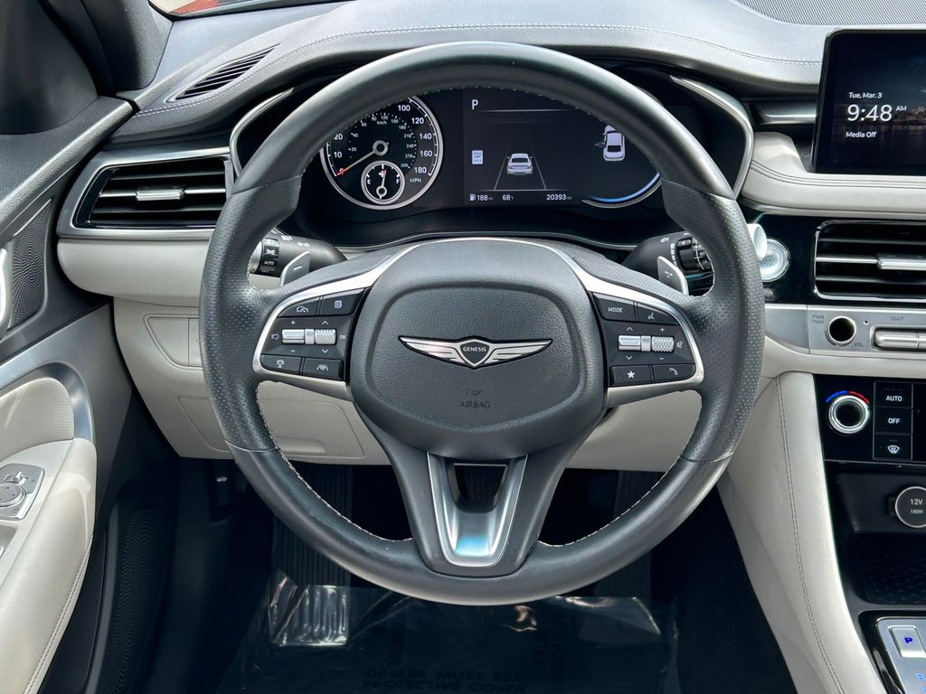 Clean CARFAX. 4-Wheel Disc Brakes, 6 Speakers, ABS brakes, Air Conditioning, Alloy wheels, AM/FM radio: SiriusXM, Android Auto & Apple CarPlay, Anti-whiplash front head restraints, Auto High-beam Headlights, Auto-dimming Rear-View mirror, Automatic temperature control, Brake assist, Bumpers: body-color, Delay-off headlights, Driver door bin, Driver vanity mirror, Dual front impact airbags, Dual front side impact airbags, Electronic Stability Control, Emergency communication system: Genesis Connected Services, Exterior Parking Camera Rear, Four wheel independent suspension, Front anti-roll bar, Front Bucket Seats, Front Center Armrest, Front dual zone A/C, Front reading lights, Fully automatic headlights, Garage door transmitter: HomeLink, Heated door mirrors, Heated front seats, Heated Multi-Adjustable Front Bucket Seats, Illuminated entry, Knee airbag, Leatherette Seating Surfaces, Low tire pressure warning, Navigation System, Occupant sensing airbag, Option Group 01, Outside temperature display, Overhead airbag, Overhead console, Panic alarm, Passenger door bin, Passenger vanity mirror, Power door mirrors, Power driver seat, Power passenger seat, Power steering, Power windows, Radio: AM/FM/SiriusXM/HD Audio System, Rear anti-roll bar, Rear reading lights, Rear seat center armrest, Rear side impact airbag, Rear window defroster, Remote keyless entry, Security system, Speed control, Speed-Sensitive Wipers, Split folding rear seat, Steering wheel mounted audio controls, Tachometer, Telescoping steering wheel, Traction control, Trip computer, Turn signal indicator mirrors, Variably intermittent wipers, Wheels: 19" x 8.0J Fr & 19" x 8.5J Rr Alloy.