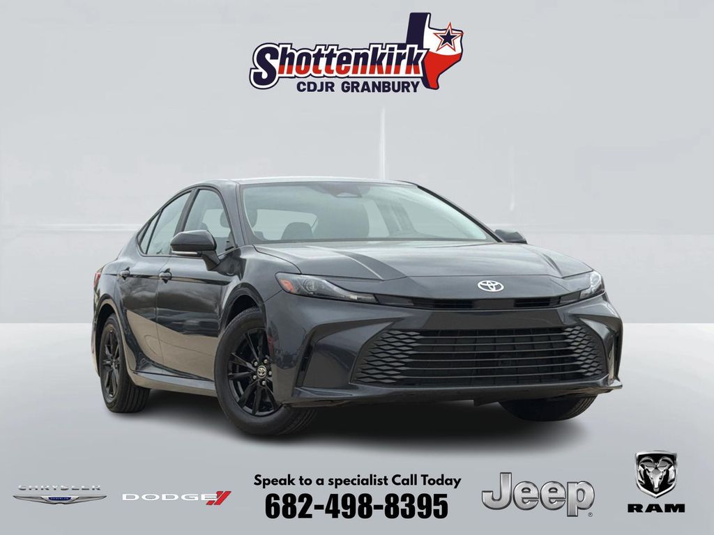CARFAX One-Owner. 2025 Toyota Camry LE 4D Sedan Heavy Metal 2.5L 4-Cylinder 16V DOHC eCVT FWD This vehicle comes well equipped with Camry LE, 4D Sedan, 2.5L 4-Cylinder 16V DOHC, FWD, Heavy Metal, Black Cloth, ABS brakes, Active Cruise Control, Alloy wheels, Electronic Stability Control, Front dual zone A/C, Heated door mirrors, Illuminated entry, Low tire pressure warning, Remote keyless entry, and Traction control Camry LE, 4D Sedan, 2.5L 4-Cylinder 16V DOHC, FWD, Heavy Metal, Black Cloth, ABS brakes, Active Cruise Control, Alloy wheels, Electronic Stability Control, Front dual zone A/C, Heated door mirrors, Illuminated entry, Low tire pressure warning, Remote keyless entry, Traction control, 4-Wheel Disc Brakes, 6 Speakers, Air Conditioning, AM/FM radio: SiriusXM, Apple CarPlay/Android Auto, Auto High-beam Headlights, Automatic temperature control, Brake assist, Bumpers: body-color, Delay-off headlights, Driver door bin, Driver vanity mirror, Dual front impact airbags, Dual front side impact airbags, Emergency communication system: Safety Connect (up to 10-year trial subscription), Exterior Parking Camera Rear, Fabric Seat Trim, Four wheel independent suspension, Front anti-roll bar, Front Bucket Seats, Front Center Armrest, Front reading lights, Fully automatic headlights, Knee airbag, Occupant sensing airbag, Outside temperature display, Overhead airbag, Overhead console, Panic alarm, Passenger door bin, Passenger vanity mirror, Power door mirrors, Power steering, Power windows, Radio data system, Radio: Toyota Audio Multimedia w/8" Touchscreen, Rear anti-roll bar, Rear seat center armrest, Rear side impact airbag, Rear window defroster, Security system, Speed control, Speed-sensing steering, Split folding rear seat, Steering wheel mounted audio controls, Telescoping steering wheel, Tilt steering wheel, Trip computer, Turn signal indicator mirrors, Variably intermittent wipers, and Wheels: 16" Silver-Finished Alloy. For more information contact one of our Internet Managers at 682-498-8390 to set up your VIP Test Drive.. At SHOTTENKIRK CDJR Granbury located in Granbury, TX all of our Pre-Owned vehicles go through a 100 point plus inspection. The oil and filter are changed, complete brake inspection, tire rotation, safety inspection and all fluid levels are topped off. If we find anything that needs attention we address the issue and fix it. So buy with confidence that you are getting a quality vehicle. We can do a complete walk around for you over the phone. Trade ins are always welcomed. We offer financing from over 25 finance and credit unions locally and nationally. SHOTTENKIRK CDJR 4970 E HWY 377 GRANBURY TEXAS 76049.