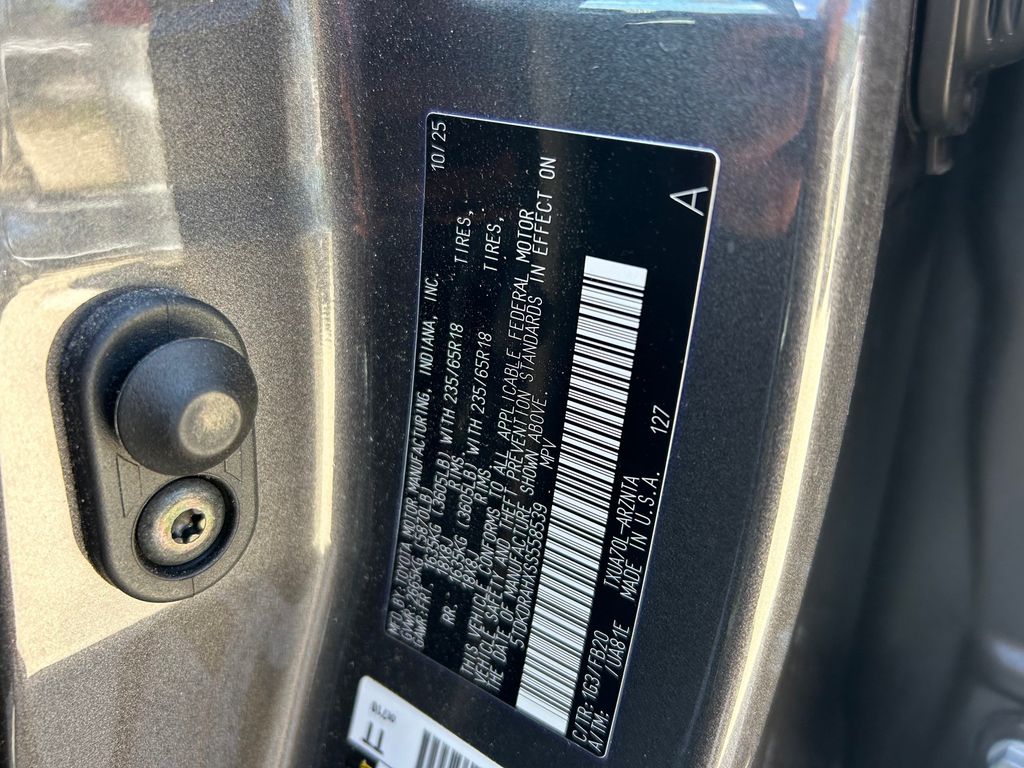 CARFAX One-Owner. Clean CARFAX. 18" Painted Alloy Wheels, 3rd row seats: split-bench, 4-Wheel Disc Brakes, 6 Speakers, ABS brakes, Air Conditioning, Alloy wheels, AM/FM radio: SiriusXM, Apple CarPlay/Android Auto, Auto High-beam Headlights, Automatic temperature control, Brake assist, Bumpers: body-color, Carpeted Floor Mats/Carpet Cargo Mat, Delay-off headlights, Driver door bin, Driver vanity mirror, Dual front impact airbags, Dual front side impact airbags, Electronic Stability Control, Emergency communication system: Safety Connect (up to 10-year trial subscription), Exterior Parking Camera Rear, Fabric Seat Trim, Four wheel independent suspension, Front anti-roll bar, Front Bucket Seats, Front Center Armrest, Front dual zone A/C, Front fog lights, Front reading lights, Fully automatic headlights, Heated door mirrors, Illuminated entry, Knee airbag, Leather Shift Knob, Leather steering wheel, Low tire pressure warning, Occupant sensing airbag, Outside temperature display, Overhead airbag, Overhead console, Panic alarm, Passenger door bin, Passenger vanity mirror, Power door mirrors, Power driver seat, Power Liftgate, Power steering, Power windows, Radio: 8" Toyota Audio Multimedia, Rear air conditioning, Rear anti-roll bar, Rear reading lights, Rear seat center armrest, Rear window defroster, Rear window wiper, Reclining 3rd row seat, Remote keyless entry, Security system, Speed control, Speed-sensing steering, Split folding rear seat, Spoiler, Steering wheel mounted audio controls, Tachometer, Telescoping steering wheel, Tilt steering wheel, Traction control, Trip computer, Turn signal indicator mirrors, Variably intermittent wipers.